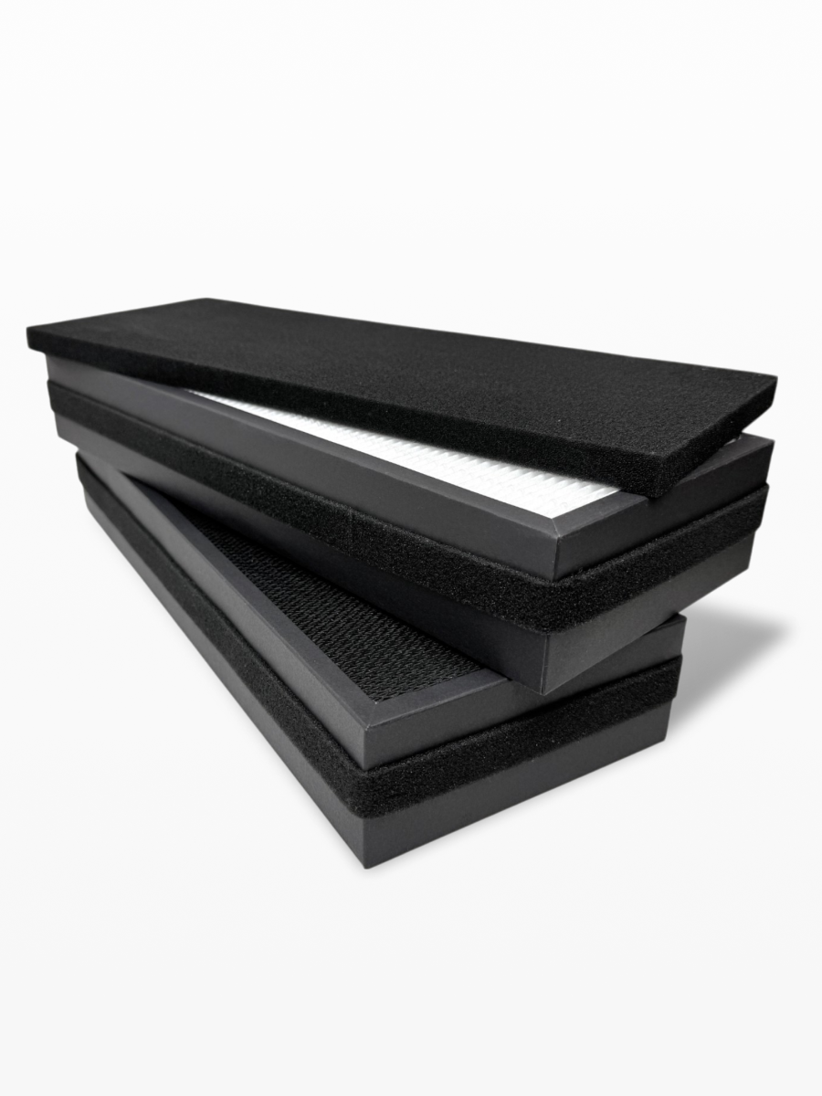 | Подробная комплектация | 1. Фильтр первичной очистки класса G4 ; 2. Высокоэффективный HEPA фильтр класса E11 ; 3. Фильтр адсорбционно-каталитический AK-XL. |