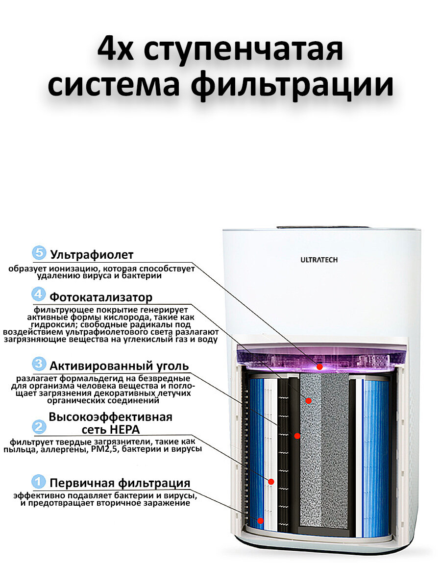 Фильтр Ultratech HEPA 13, для очистителя воздуха, сменный, четыре степени защиты интересное: