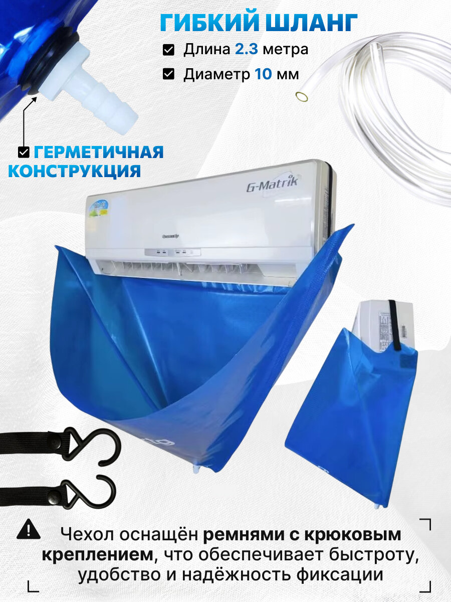 Купить Чехол для чистки кондиционера, размер M, ПВХ, с дренажным шлангом 2.3м
