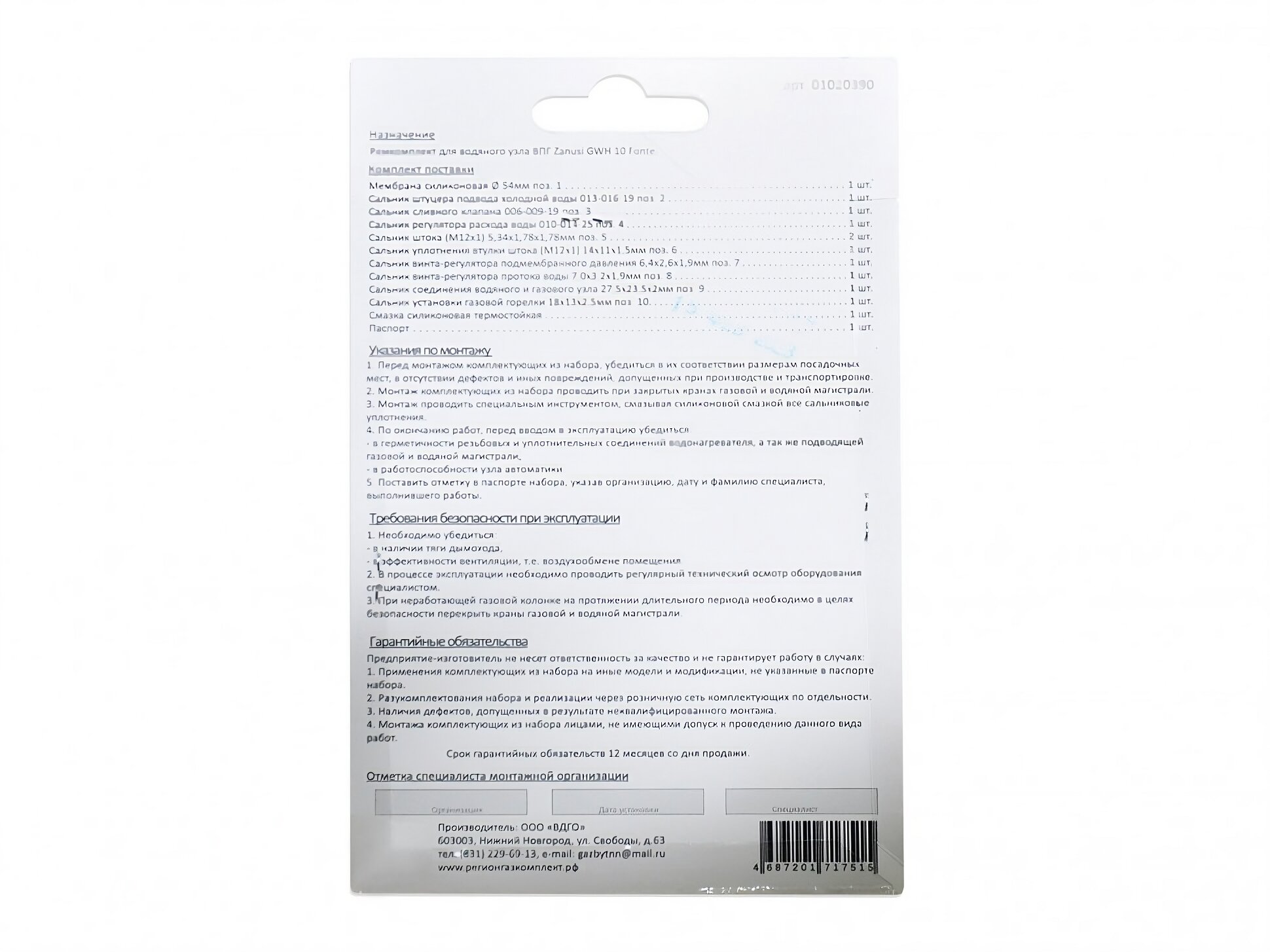 Ремкомплект водяного узла газовой колонки Zanussi GWH 10 Fonte (до 03.2017) интересное: