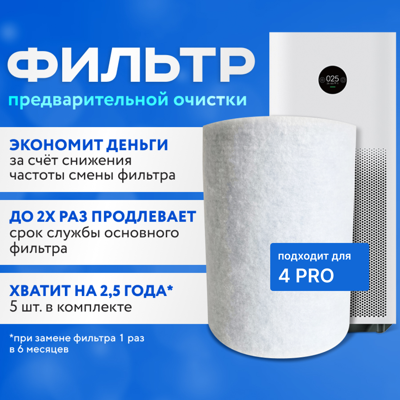 Купить Фильтр для очистителя воздуха Xiaomi mi air purifier 4 PRO предварительной очистки, одноразовый. 5 шт. в комплекте.