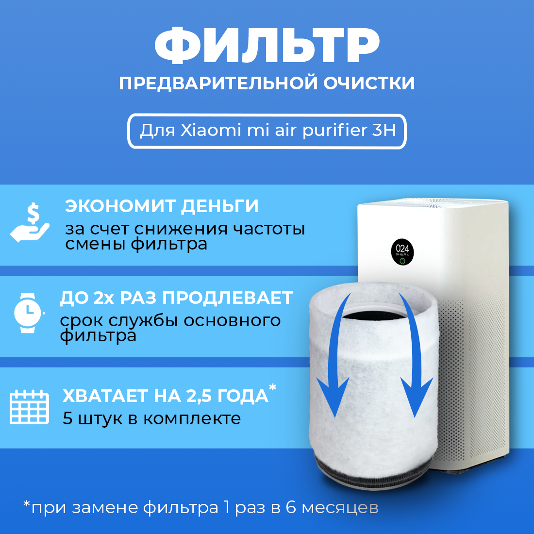 СохранитьФильтр для очистителя воздуха Xiaomi mi air purifier 3H предварительной очистки, одноразовый. 5 шт. в комплекте. интересное: