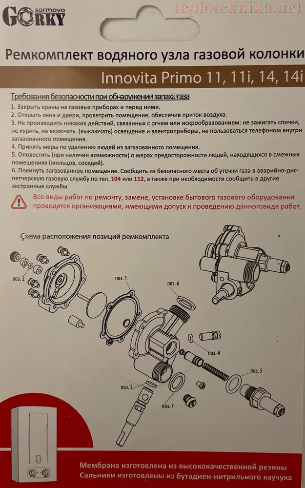 Ремкомплект газовой колонки Innovita Primo 11, 11i, 14, 14i (мембрана, сальники) интересное: