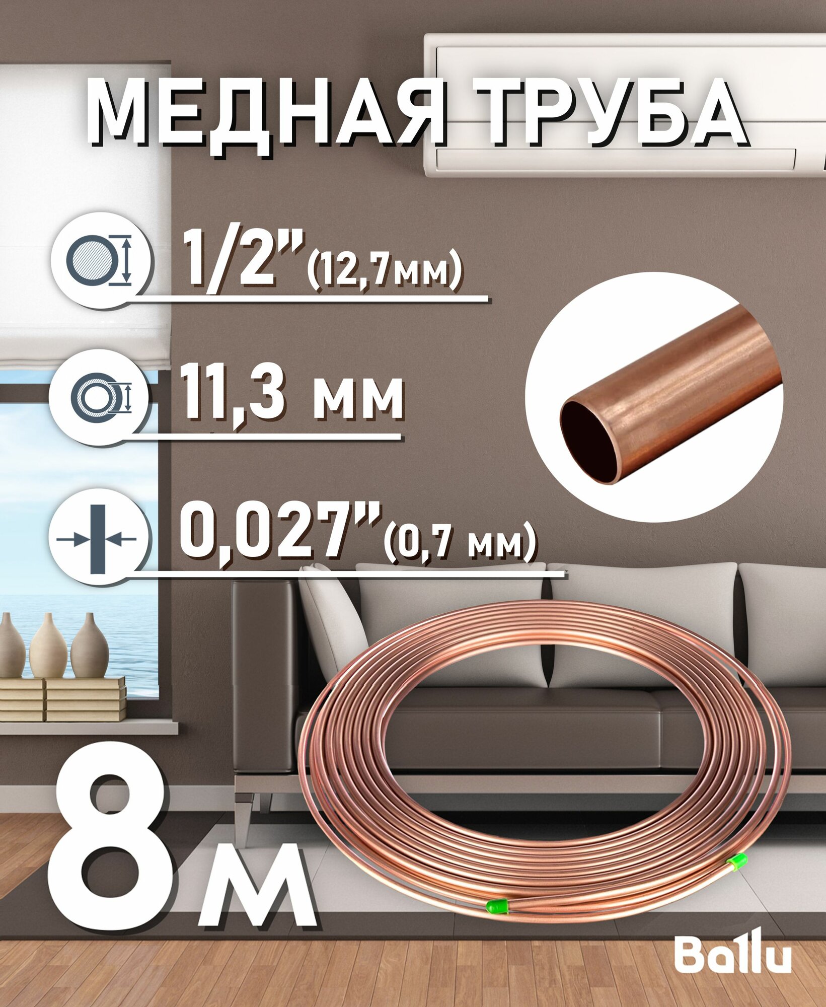 Купить Труба медная 1/2" (12,7 мм) 8 метров Ballu Olympic