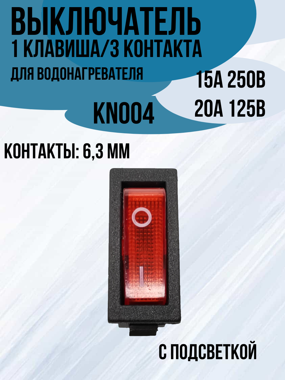 Купить Выключатель одноклавишный, 3 контакта кнопка универсальная с подсветкой для водонагревателей