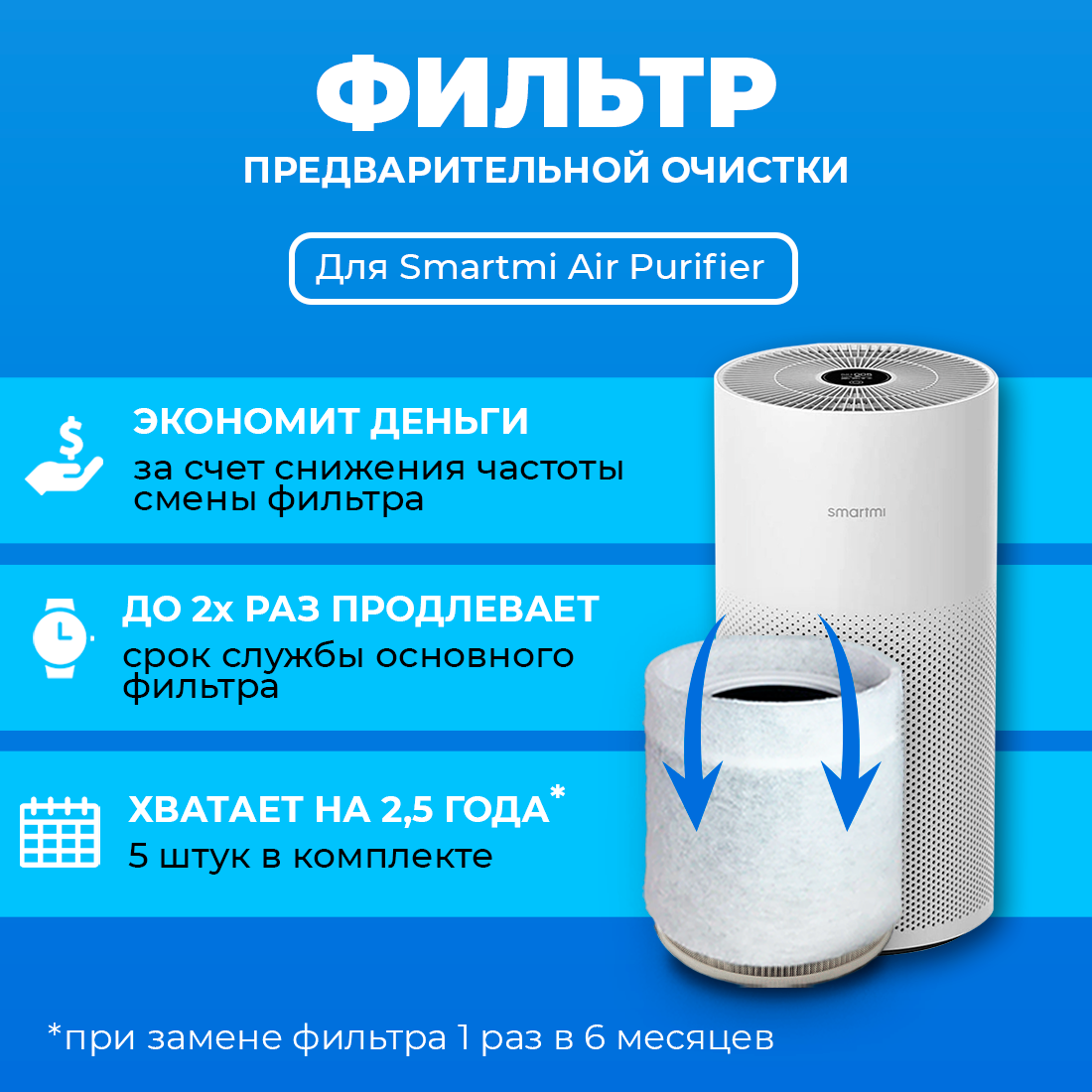 Фильтр для очистителя воздуха Smartmi предварительной очистки. 5 шт. в комплекте. (Префильтр) интересное: