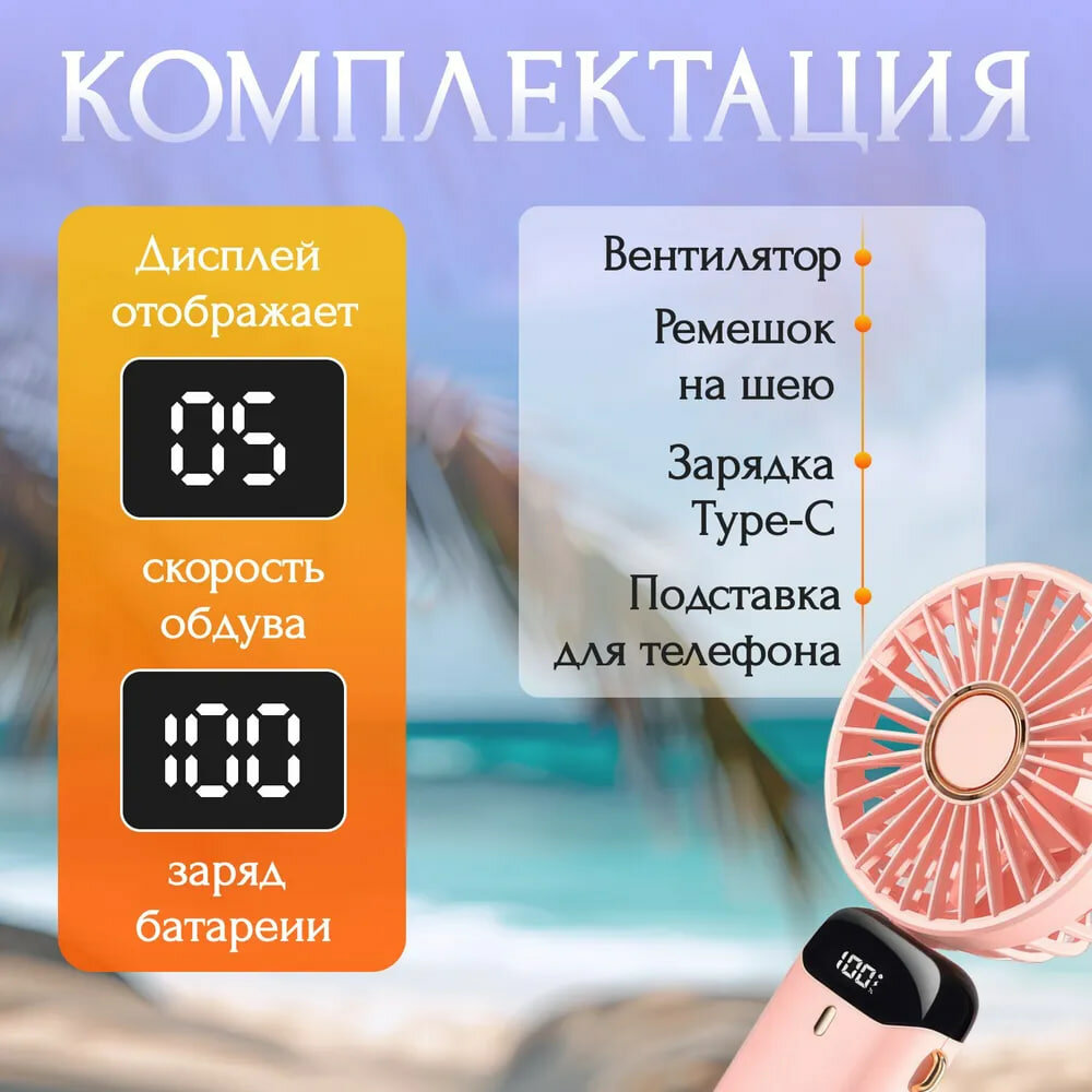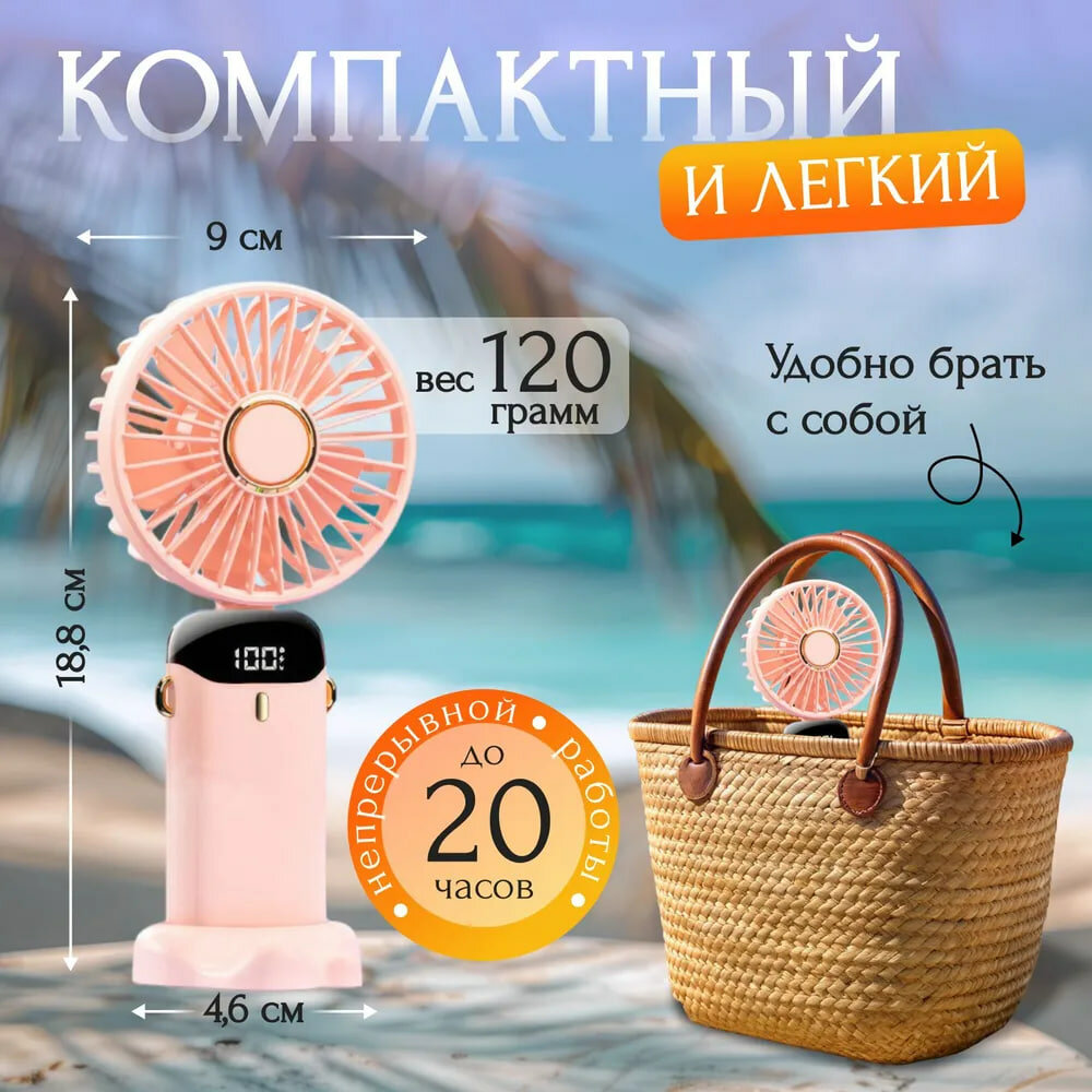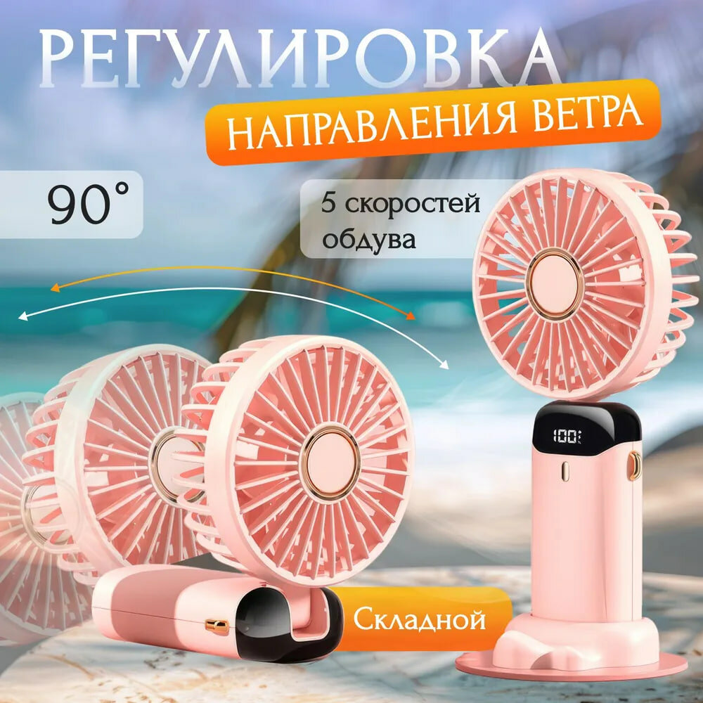 Ручной портативный мини-вентилятор розовый, с подставкой под смартфон и 5-ю режимами скорости интересное: