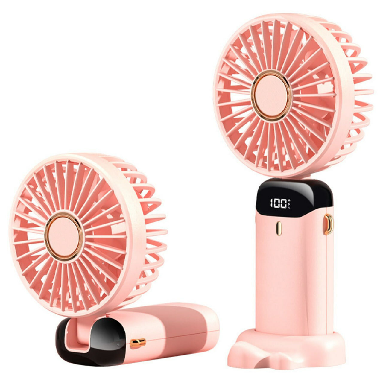 Купить Ручной портативный мини-вентилятор розовый, с подставкой под смартфон и 5-ю режимами скорости
