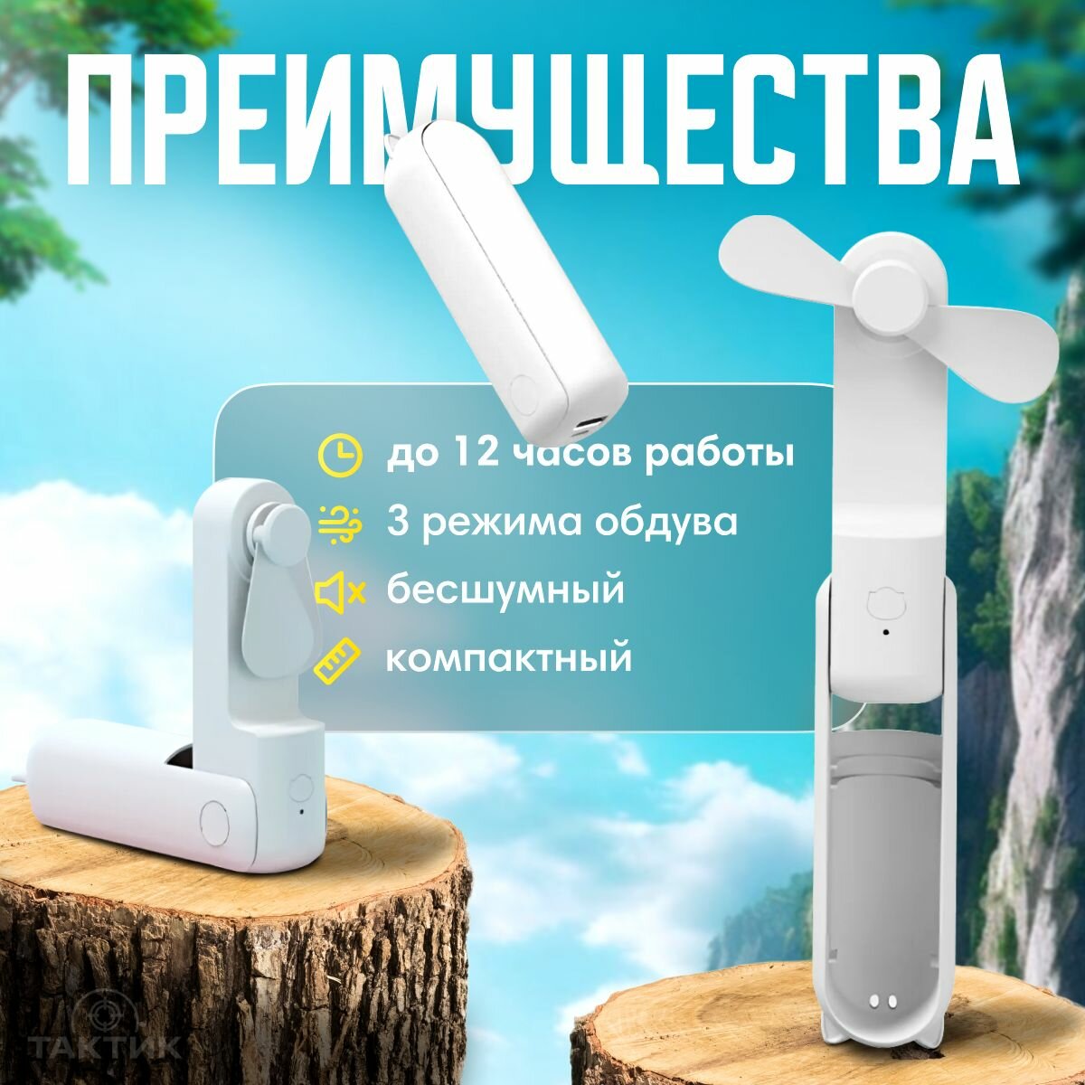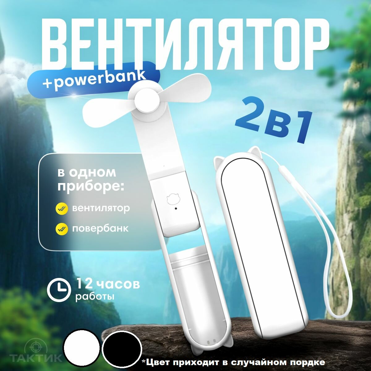 Вентилятор аккумуляторный ручной карманный с павербанком (вентилятор powerbank) 3000mA h портативный белый интересное: