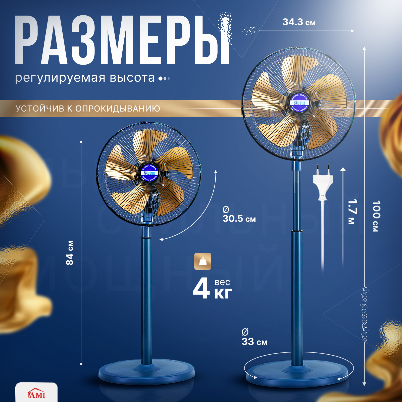 Купить Вентилятор напольный мощный Storm, настольный поворотный кондиционер с регулировкой высоты и наклона, синий, Ами Мебель