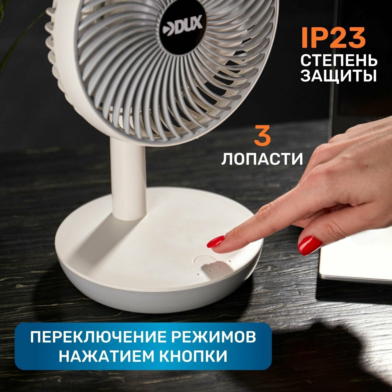 Купить Вентилятор настольный DUX мощность 6 Вт, питание от USB 4 режима, белый