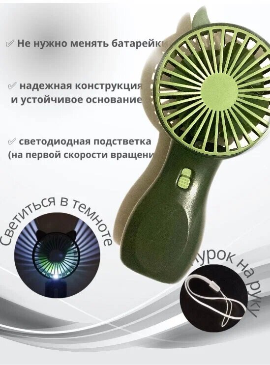 Портативный вентилятор, ручной маленький вентилятор, мини вентилятор, зеленый интересное: