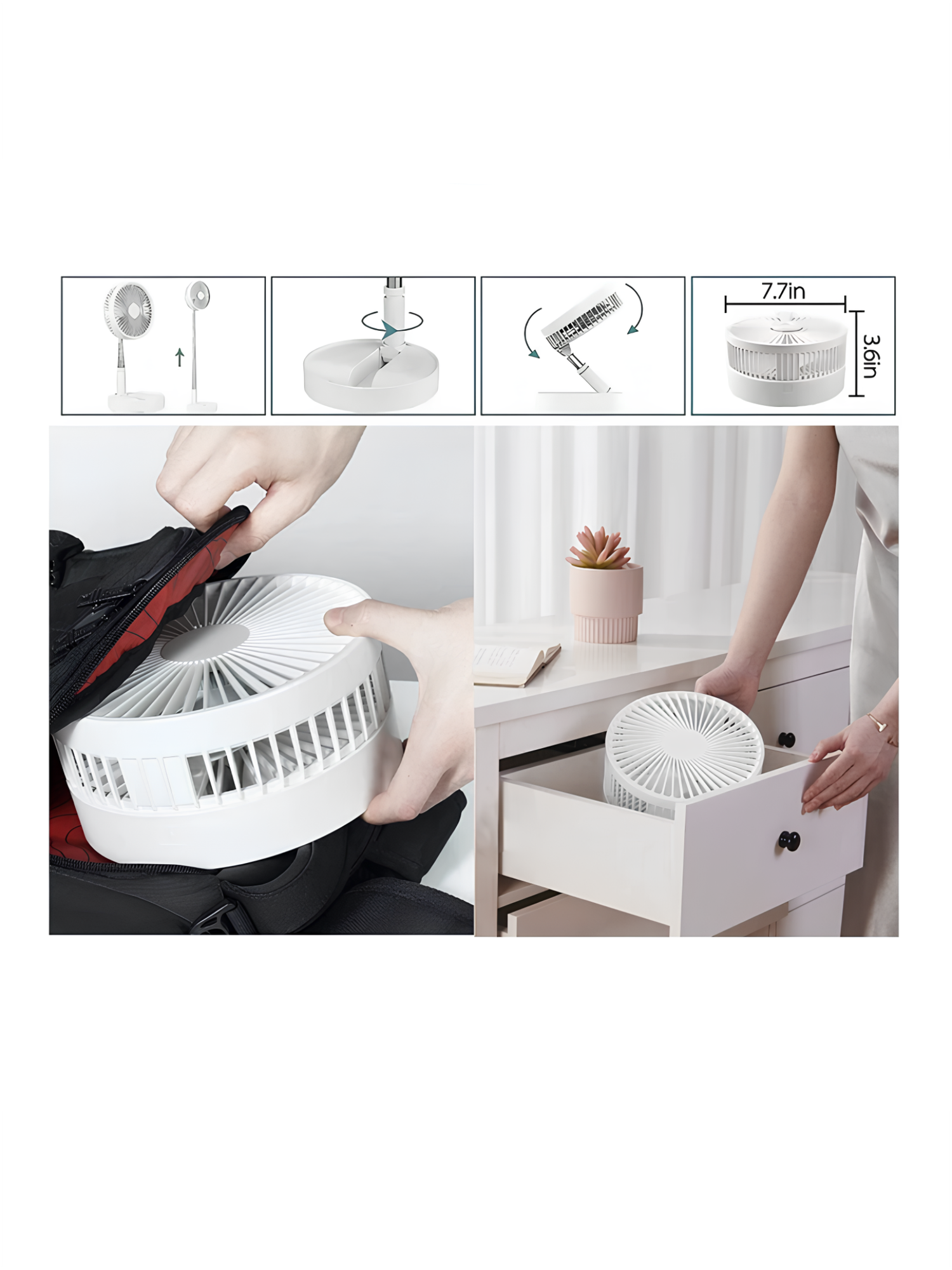 Купить Вентилятор напольный Dason 100, складной аккумуляторный портативный 3 скорости сильный ветер, белый