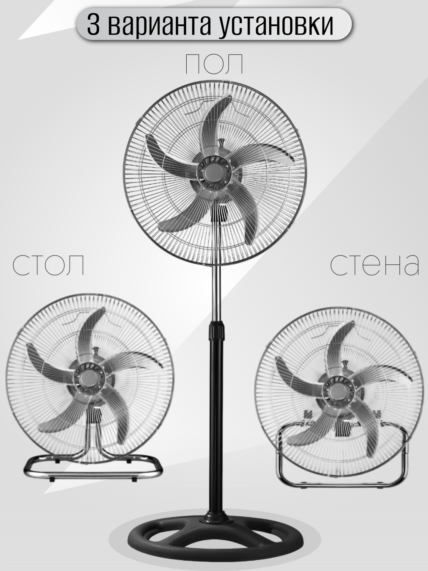 Вентилятор Grandfar напольный, настенный, настольный (3в1) CSF-18BL 140 Вт черный интересное: