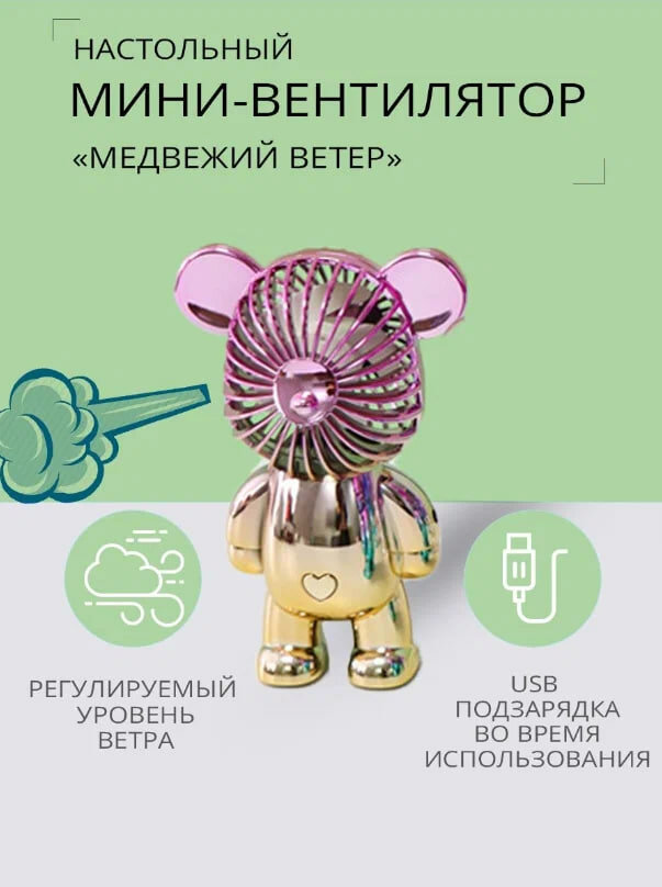 Золотистый "Мишка-вентилятор" / ручной портативный вентилятор от Shark-Shop интересное: