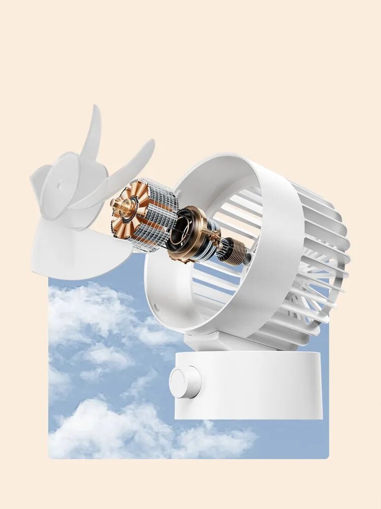 Вентилятор портативный бесшумный на прищепке на шею, поясной, настольный, мини беспроводной FAN White белый с ремешком