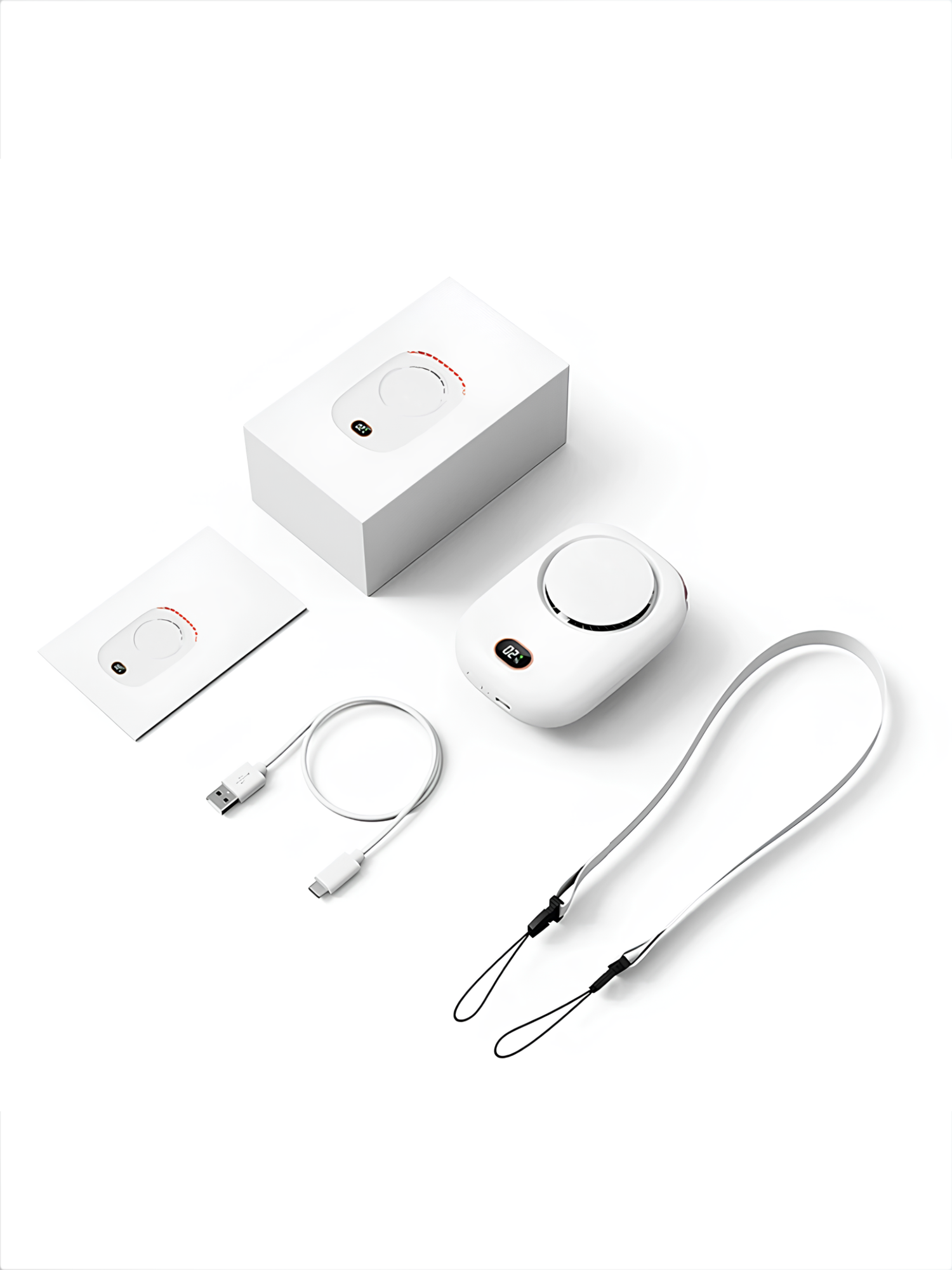 Купить Портативный мини вентилятор FAN, 3 режима скорости LED-экран с удобной веревочкой на шею, белый