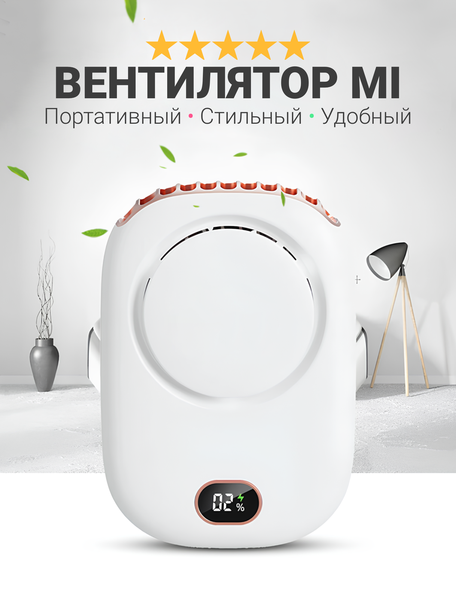 Портативный мини вентилятор FAN, 3 режима скорости LED-экран с удобной веревочкой на шею, белый интересное: