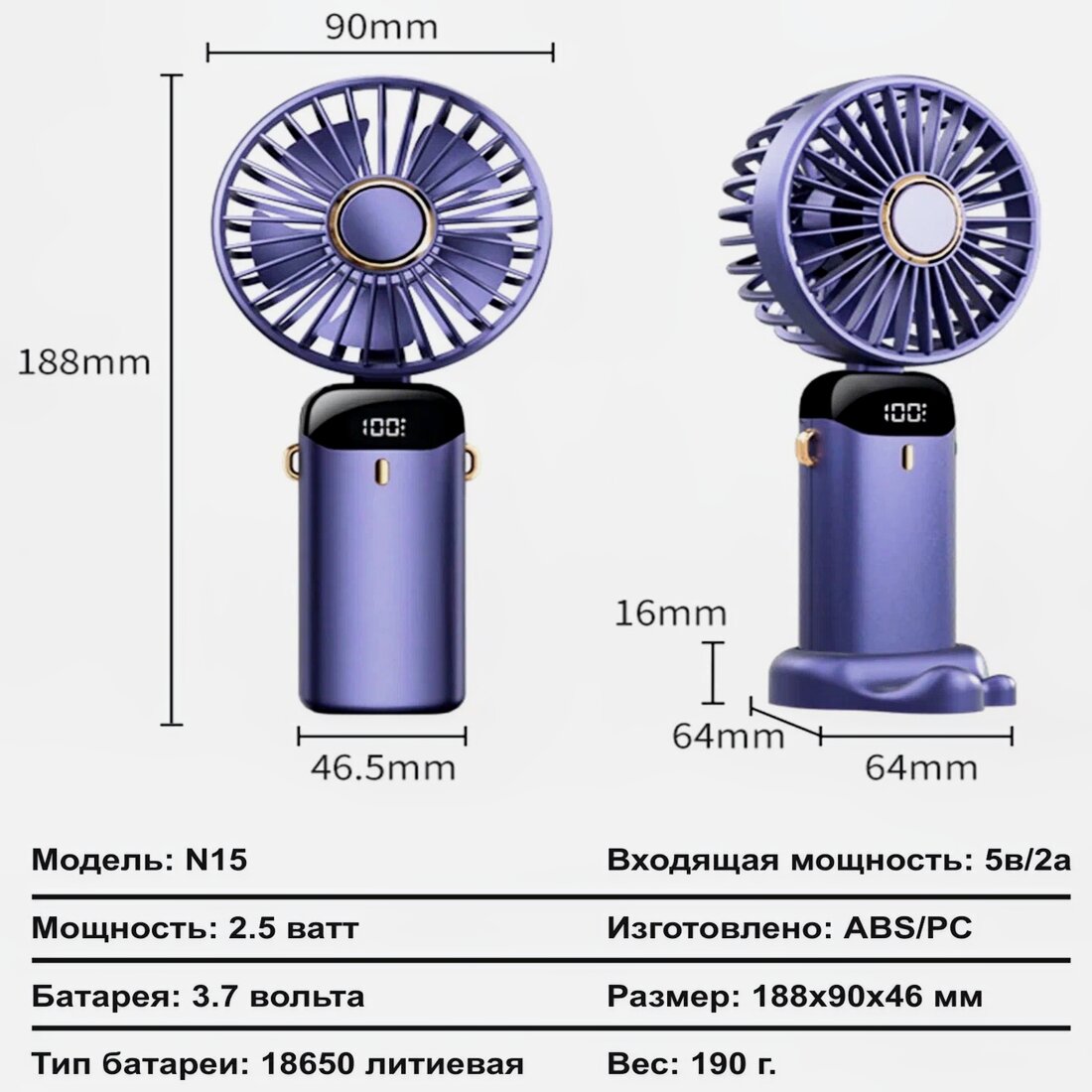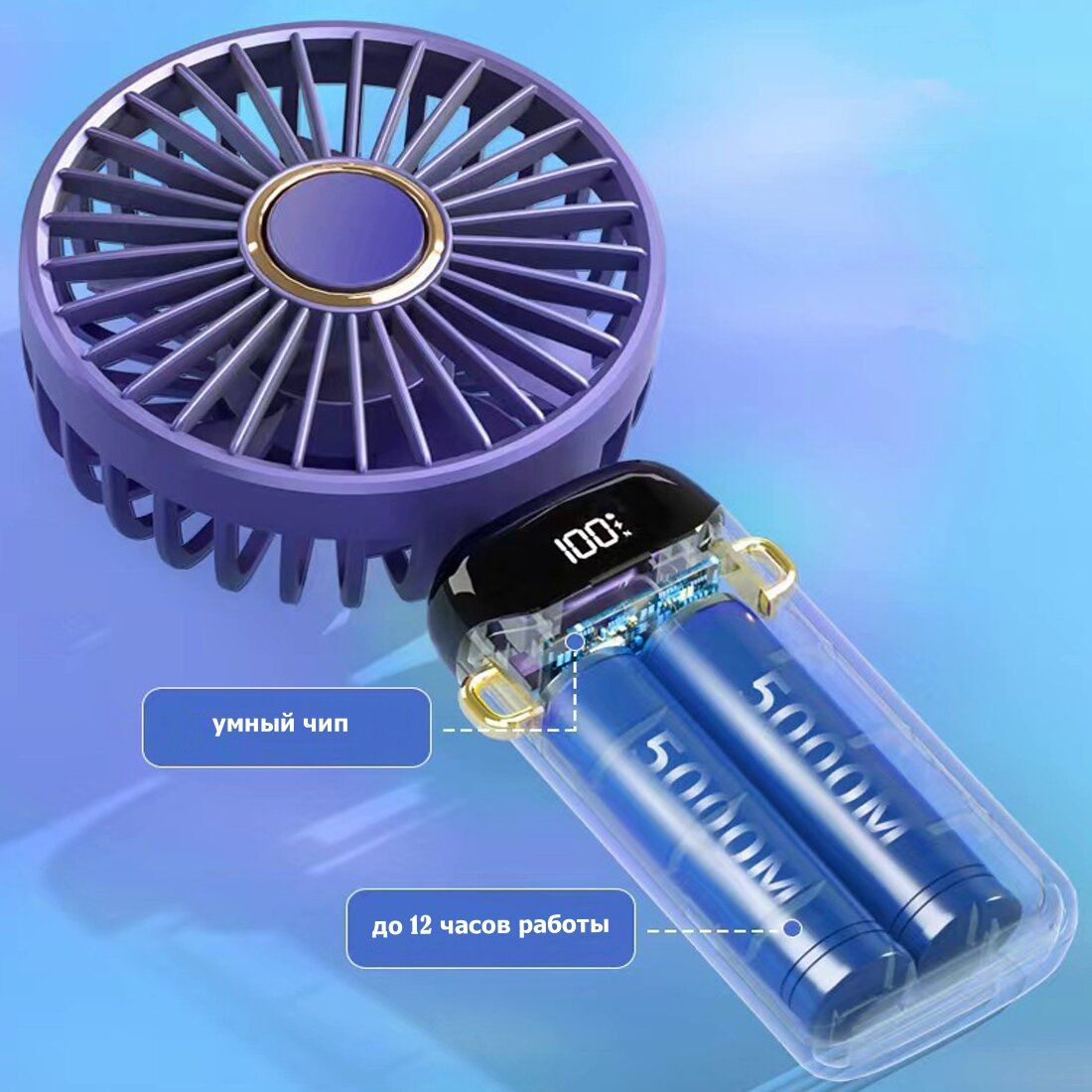 Мини-вентилятор "Синие сумерки", 2.5Вт, 5 скоростей, с дисплеем, осевой механизм, пластик. интересное: