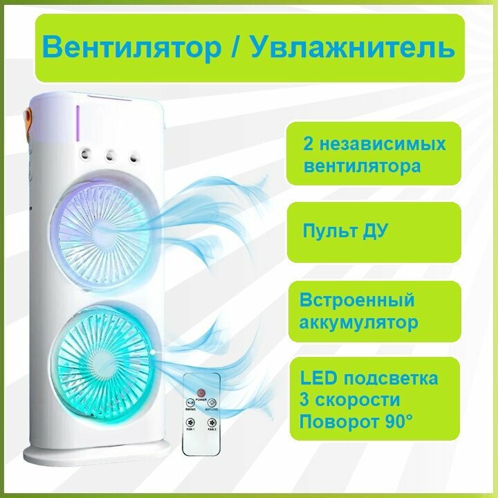 REXUS F-202 - двойной вентилятор, увлажнитель, вращение, пульт ДУ, LED подсветка интересное:
