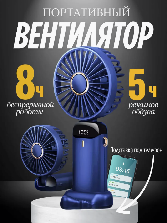 Портативный вентилятор OEM, USB, влагозащитный, 5 режимов, синий интересное: