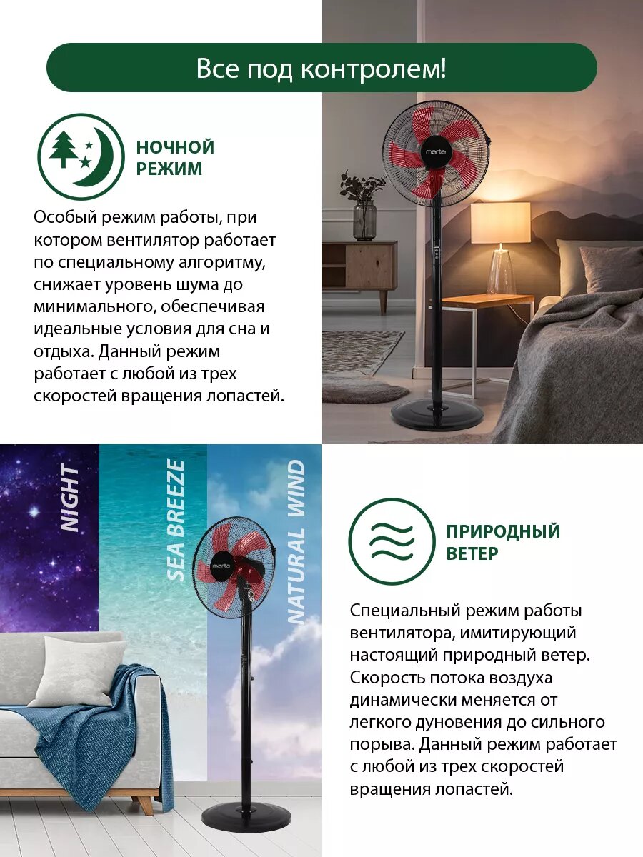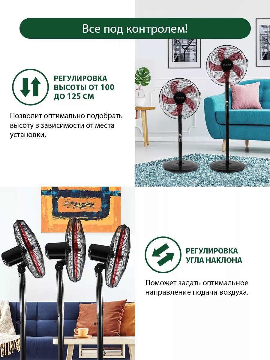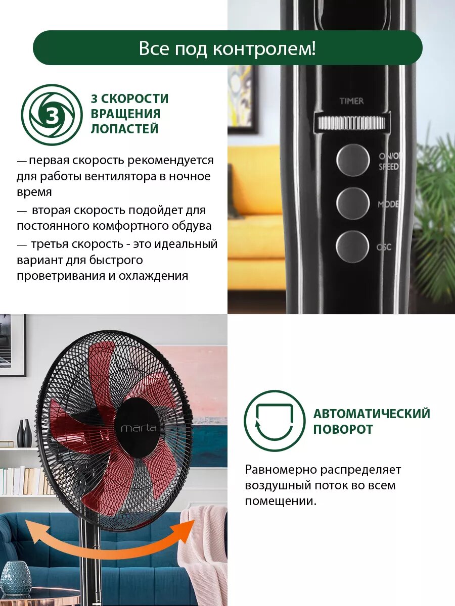 Напольный вентилятор с пультом ДУ MARTA MT-FN2543 черный/красный интересное: