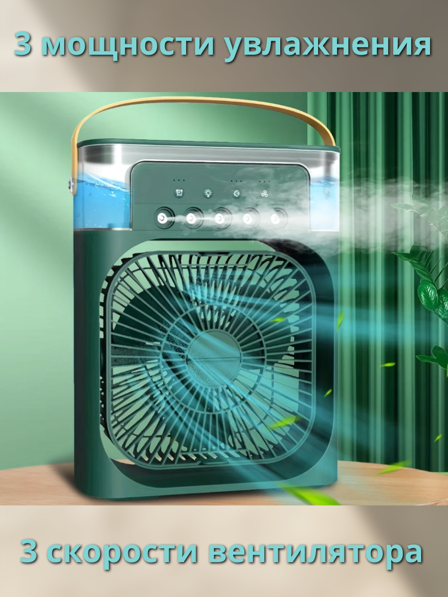 Настольный вентилятор, увлажнитель, мини-кондиционер МАЛЕНЬКИЙ Mini Cooling Fan, зеленый