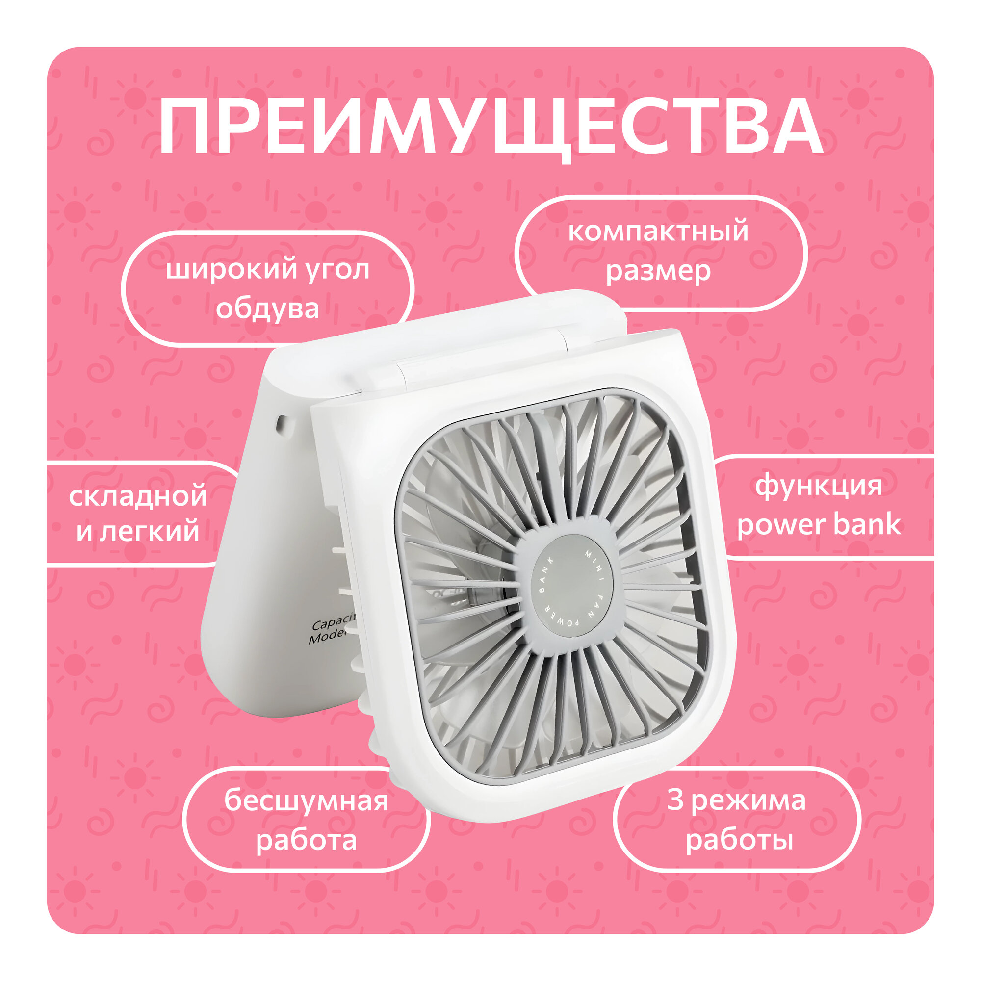 Портативный складной мини-вентилятор + Power Bank, 3 скорости. интересное: