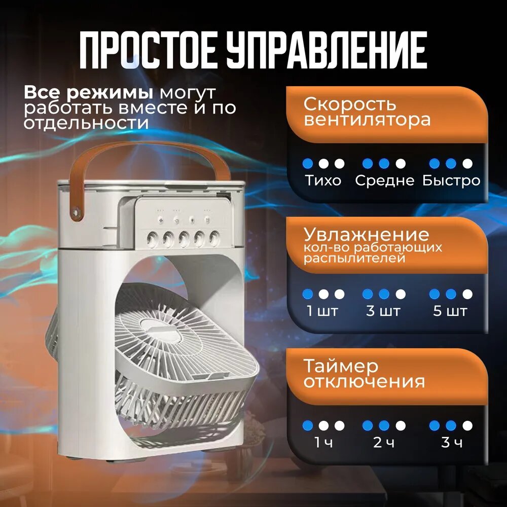 Вентилятор с увлажнителем, настольный, белый, 5Вт, площадь 30м², 3 скорости интересное: