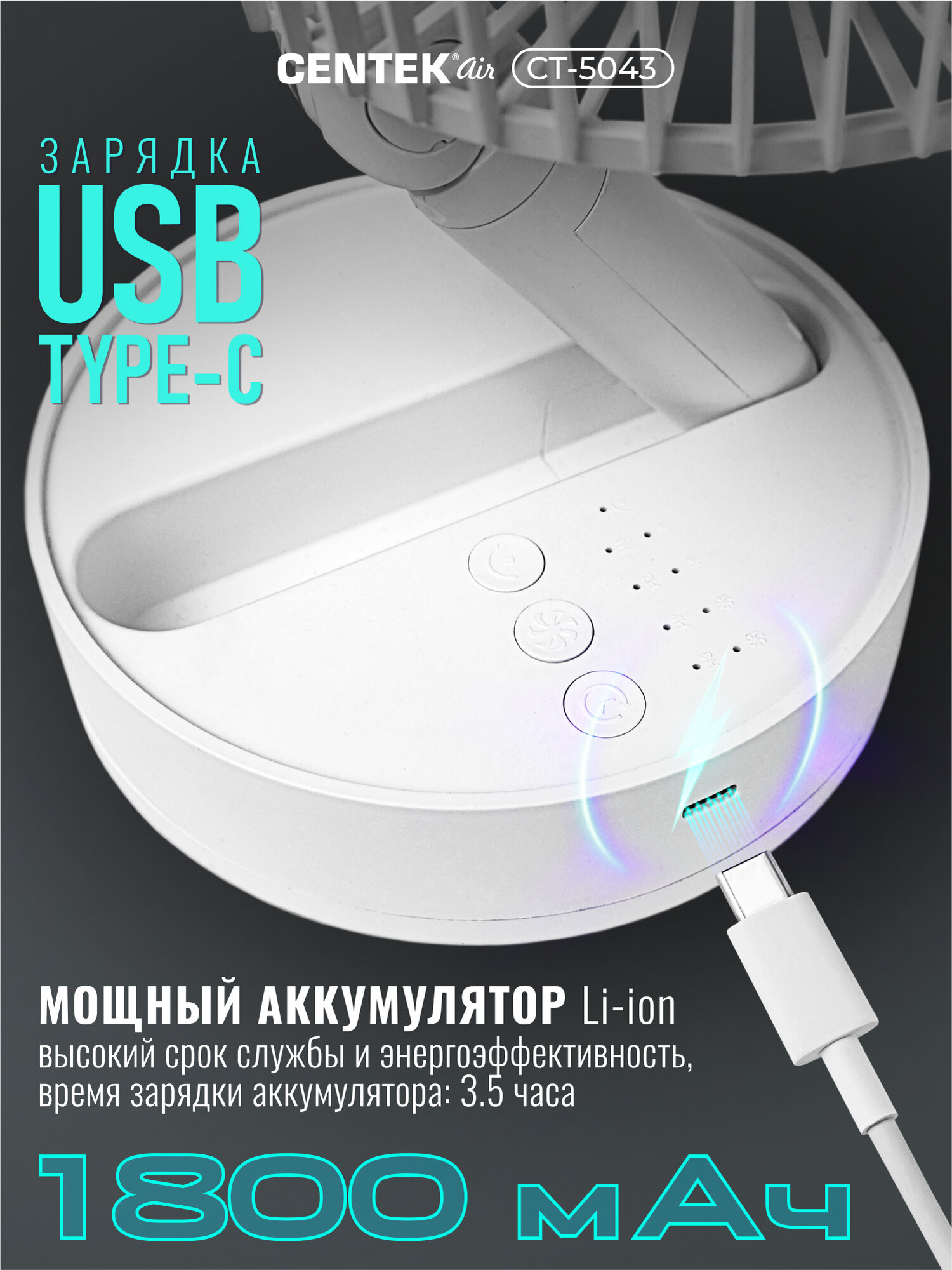 Вентилятор настольный Centek CT-5043: аккумуляторный 1800 мА*ч, телескопическая штанга, 4 скорости, автовращение интересное: