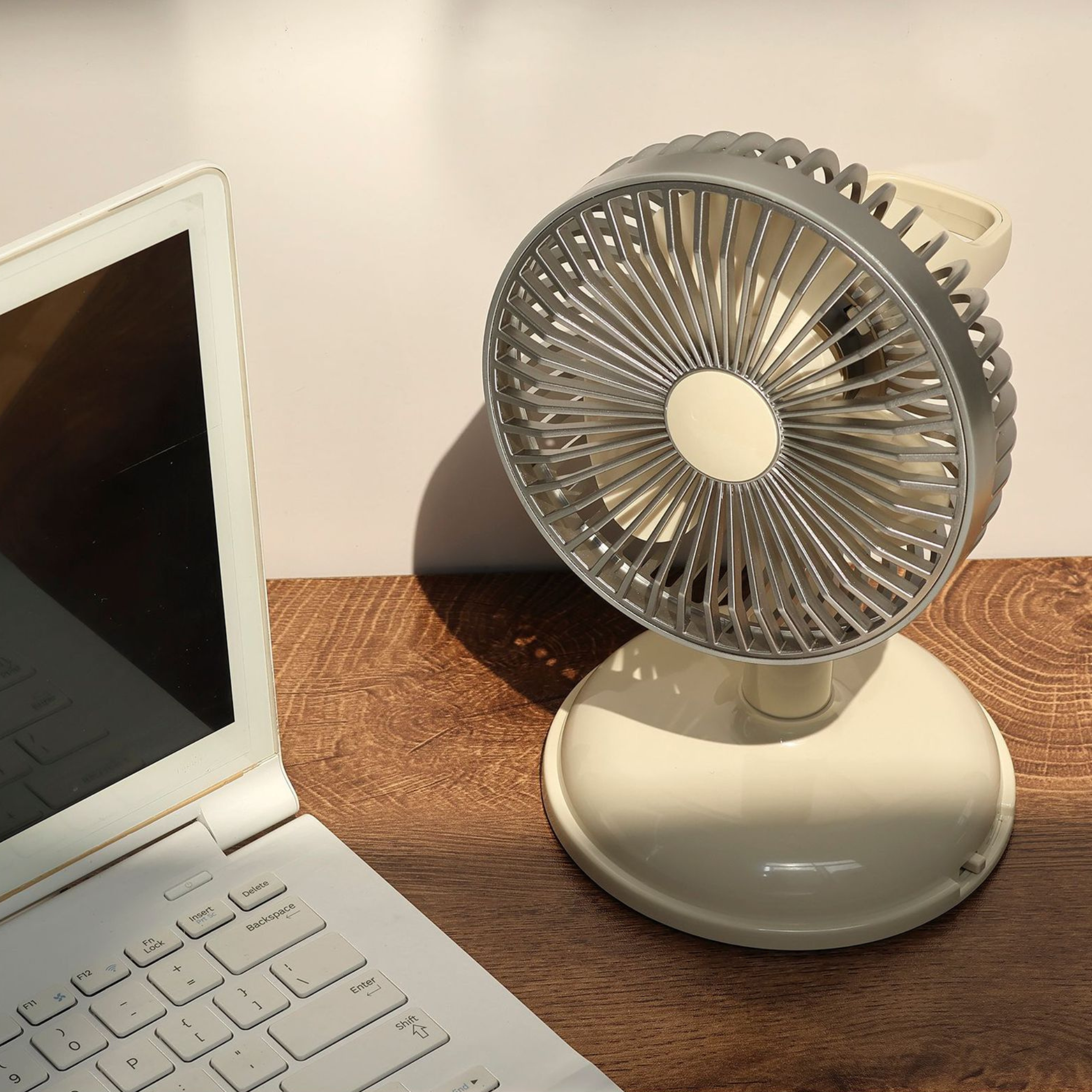 Купить Настольный / напольный вентилятор с зарядкой от USB, аккумуляторный (молочный-белый)