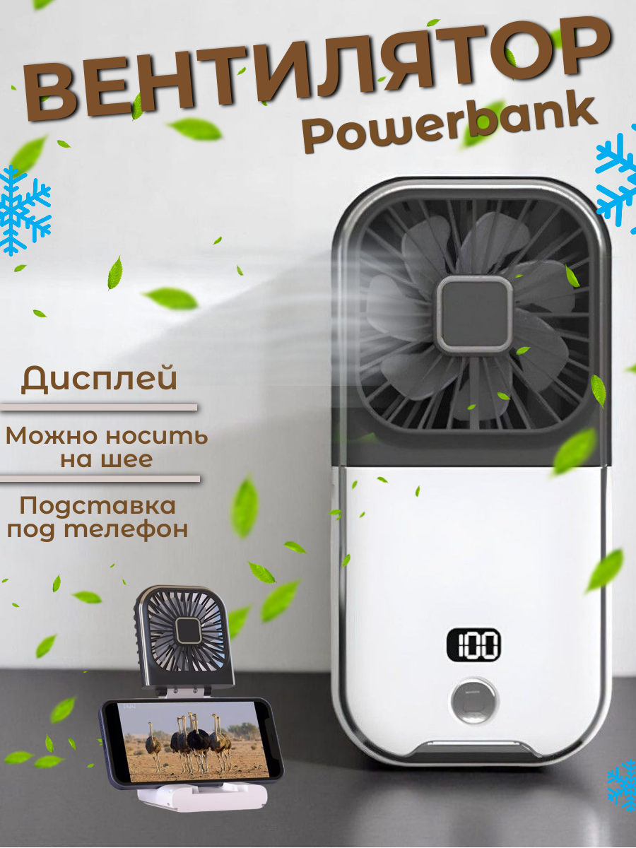 Портативный вентилятор-повербанк 3в1 3000mAh (F30 pro), белый