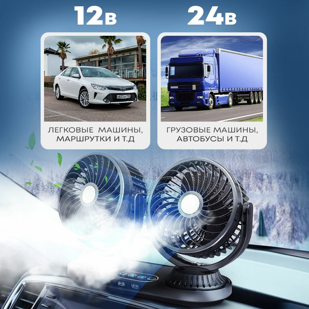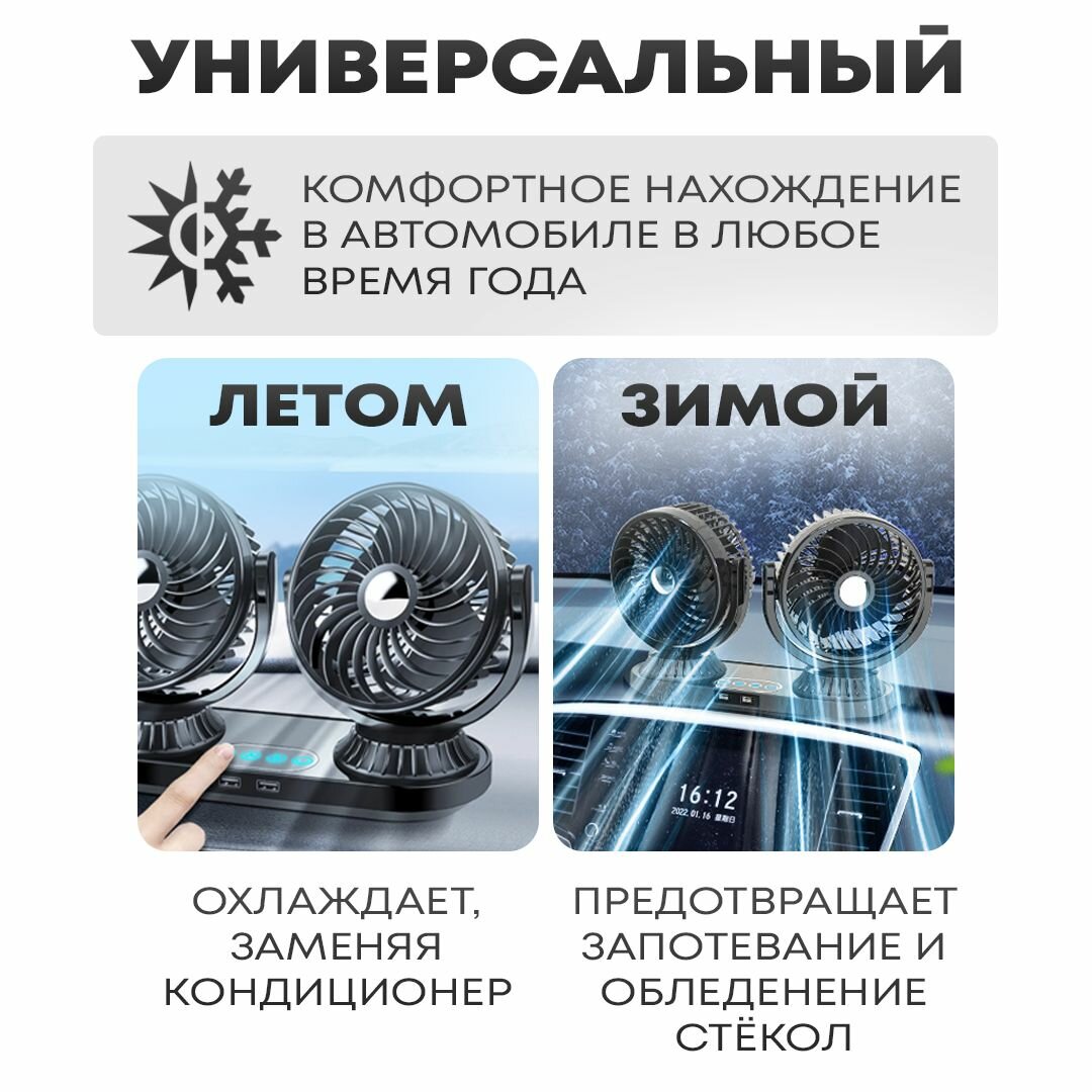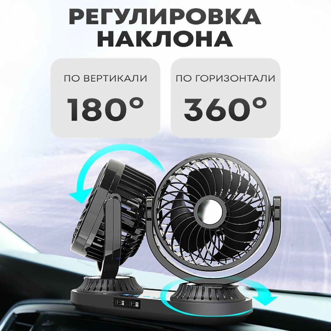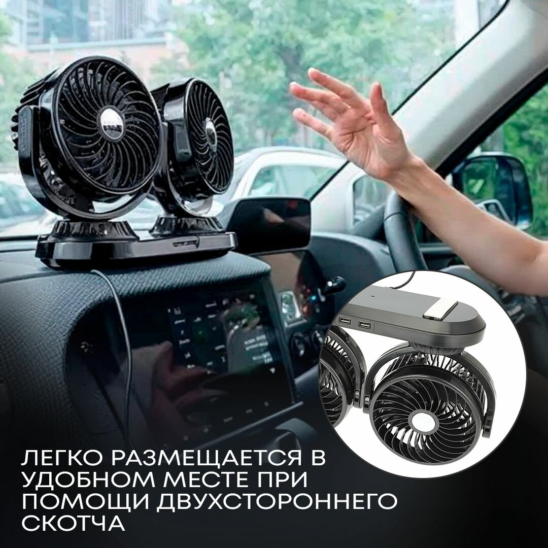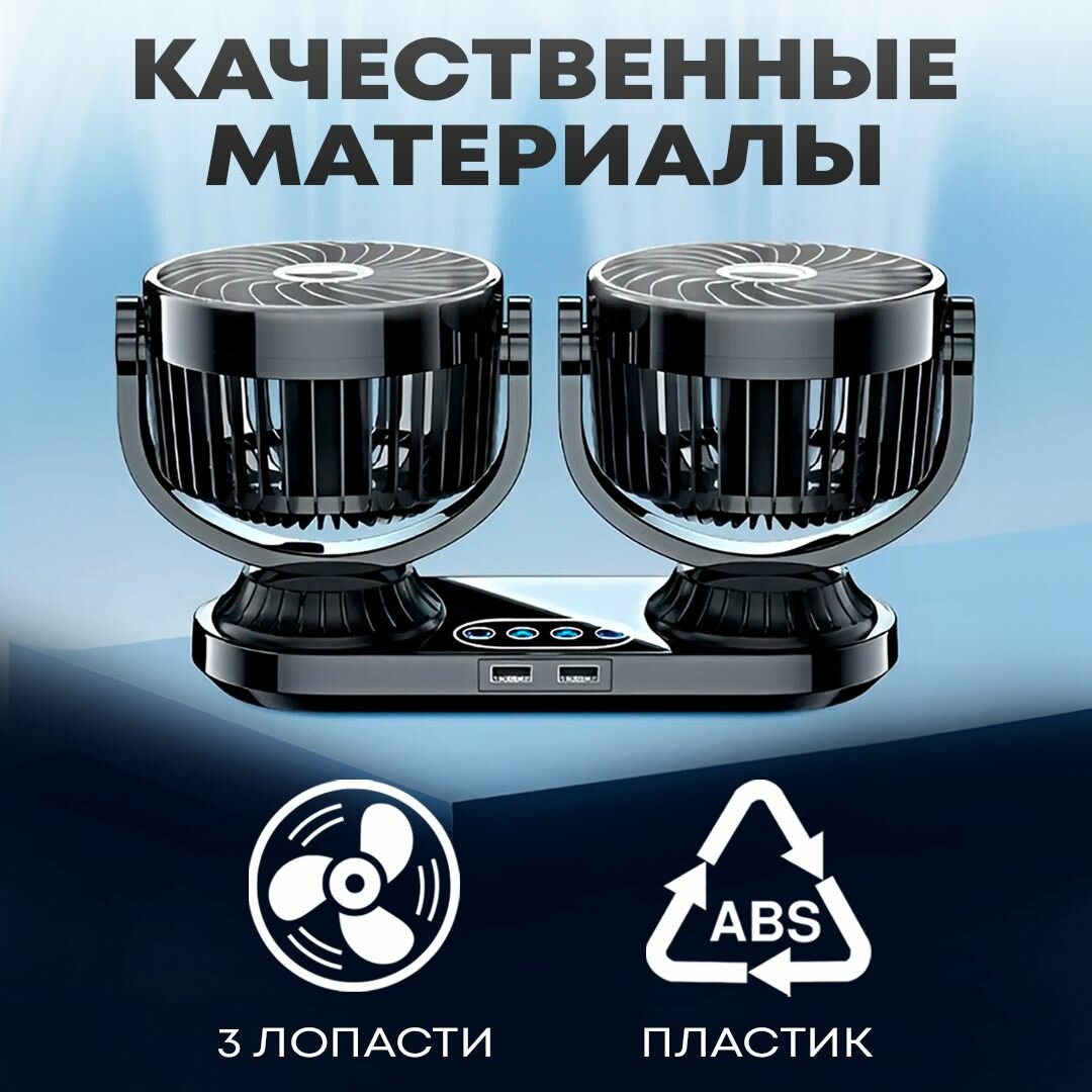 Автовентилятор двойной d-150 мм, автомобильный вентилятор от прикуривателя 12-24В, с USB разветвителем интересное: