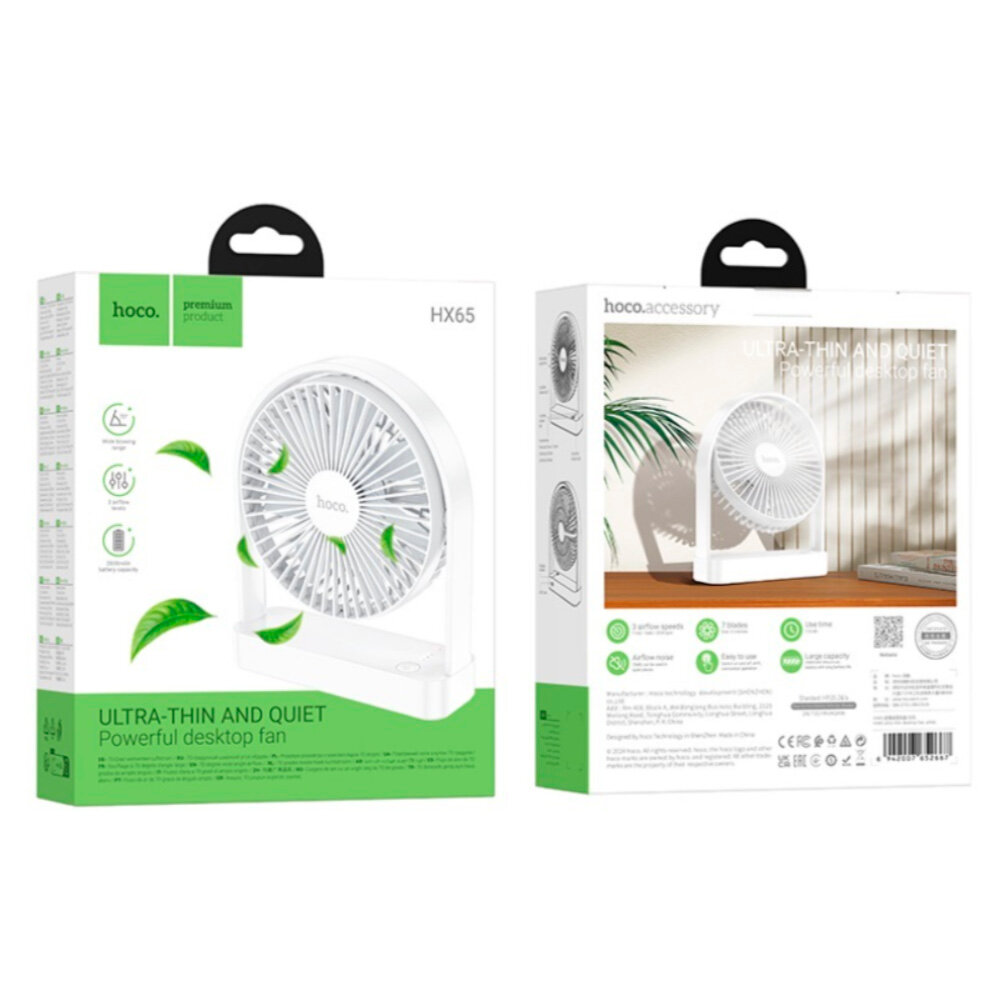 Купить Hoco Настольный портативный вентилятор Hoco HX65 Ultra-thin Desktop Fan, 2000 mAh, белый