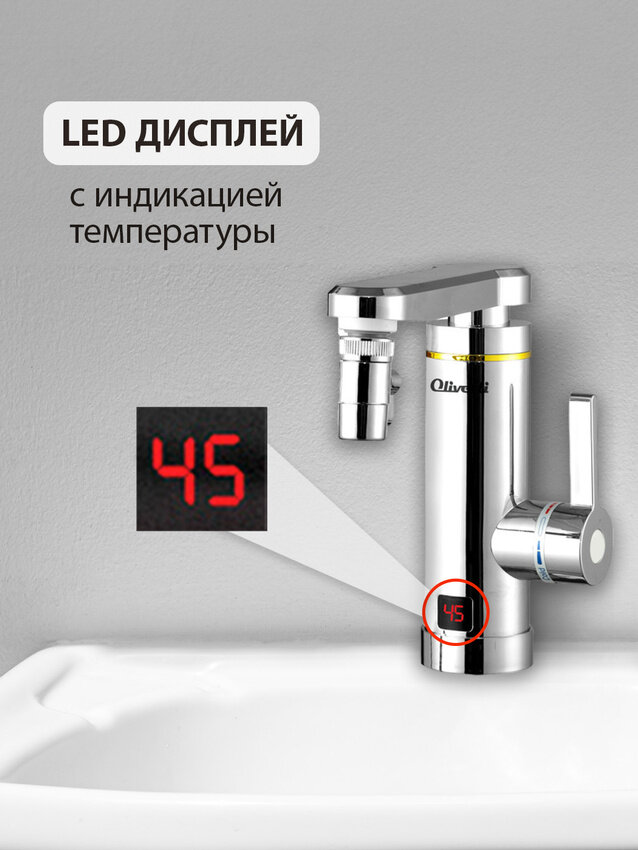 Водонагреватель проточный 2 в 1 с краном и лейкой OLIVETTI OL-WH4056SS, дисплей, регулировка температуры интересное: