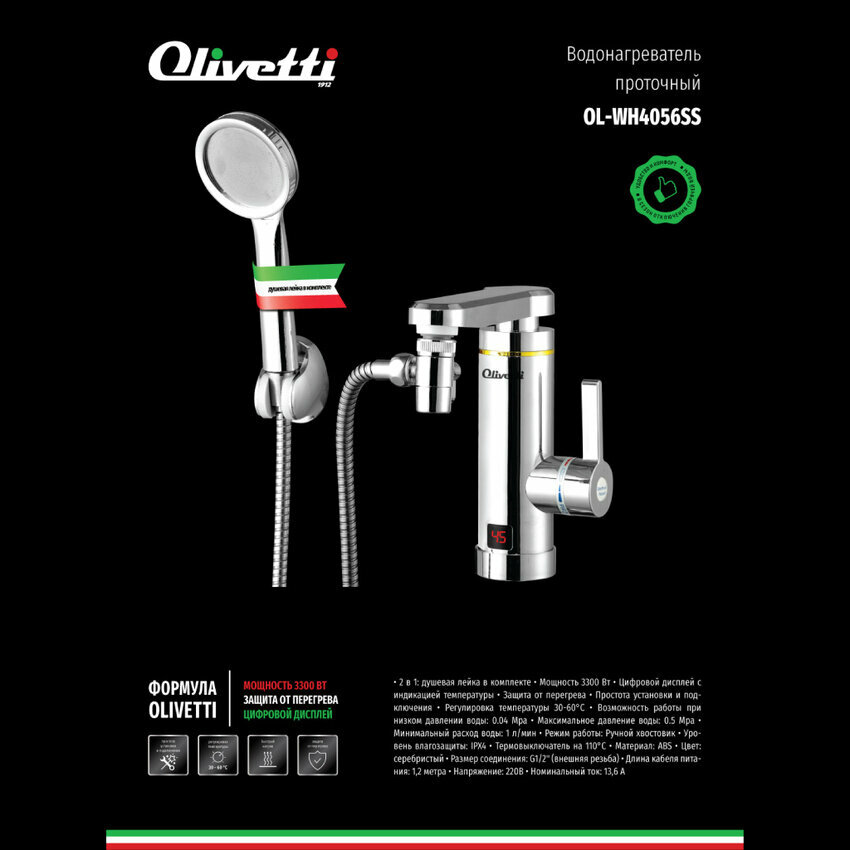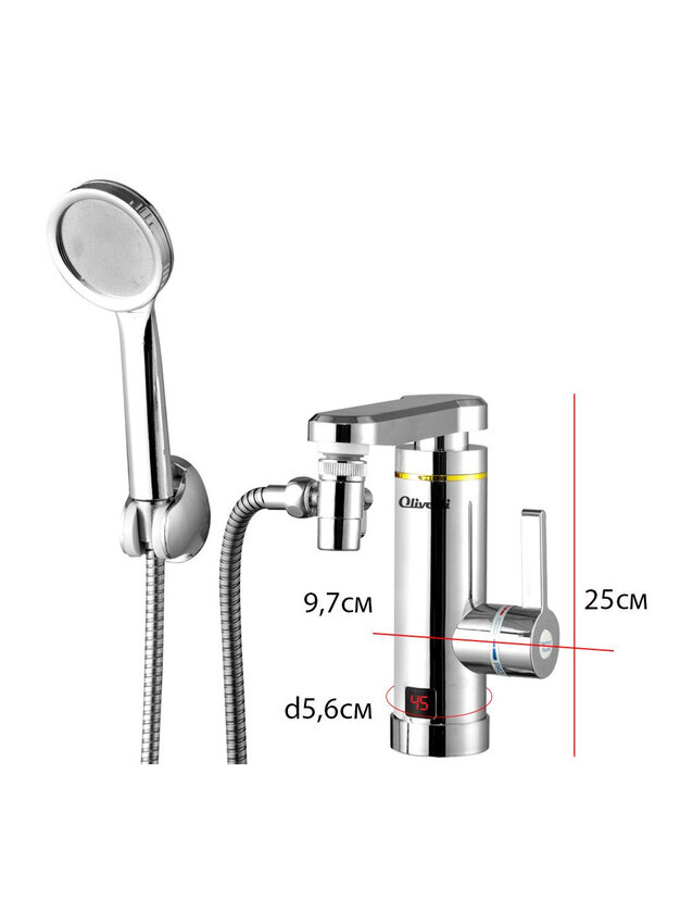 Купить Водонагреватель проточный 2 в 1 с краном и лейкой OLIVETTI OL-WH4056SS, дисплей, регулировка температуры