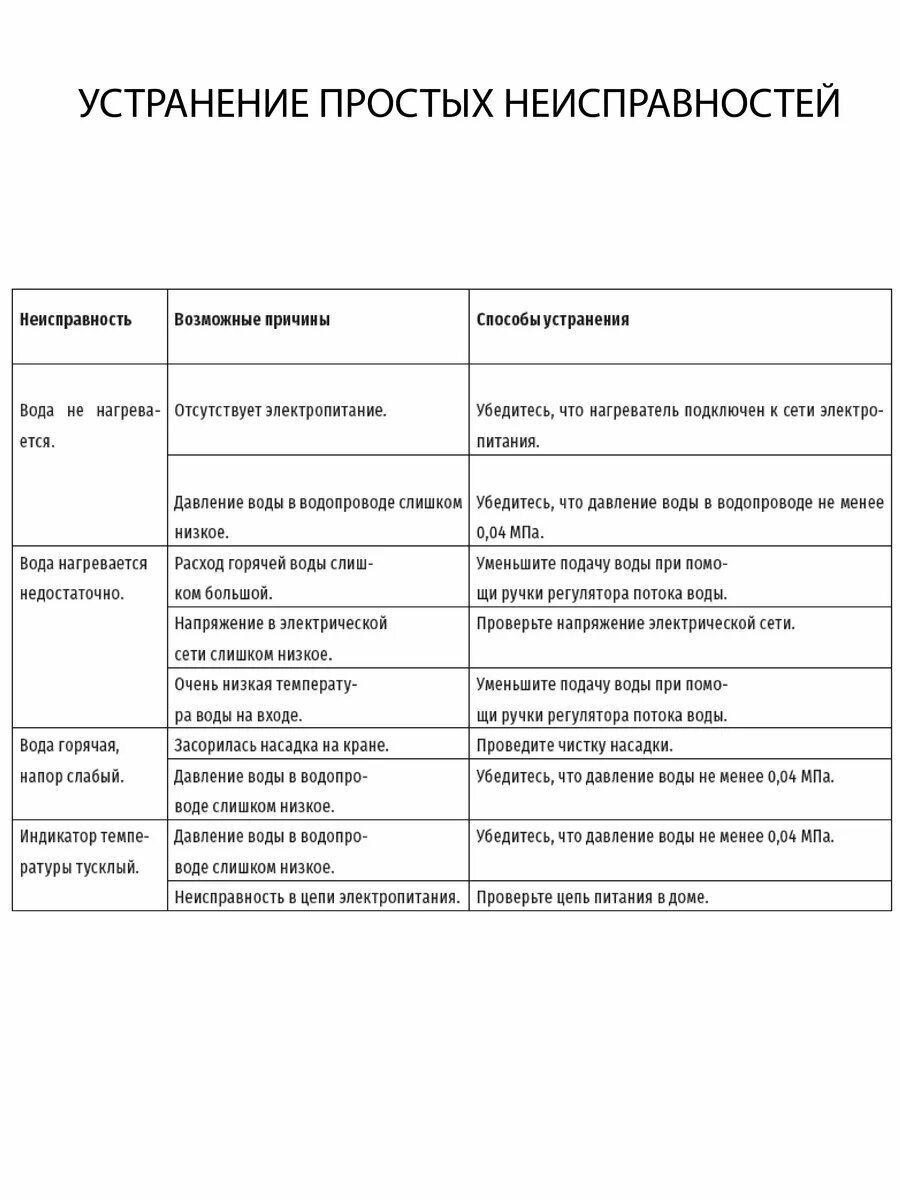 | Минимальная температура нагрева воды | 30 °C |