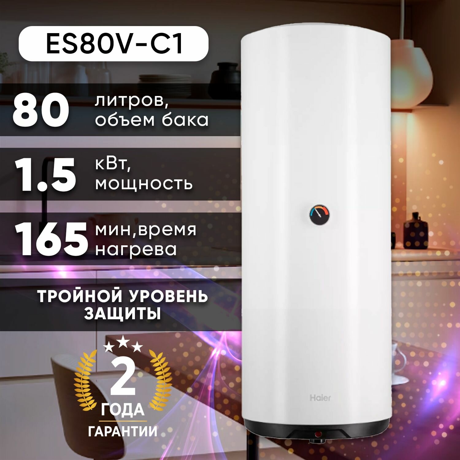 Купить Водонагреватель накопительный Haier ES80V-C1, 80 литров, электрический, настенный, с термометром
