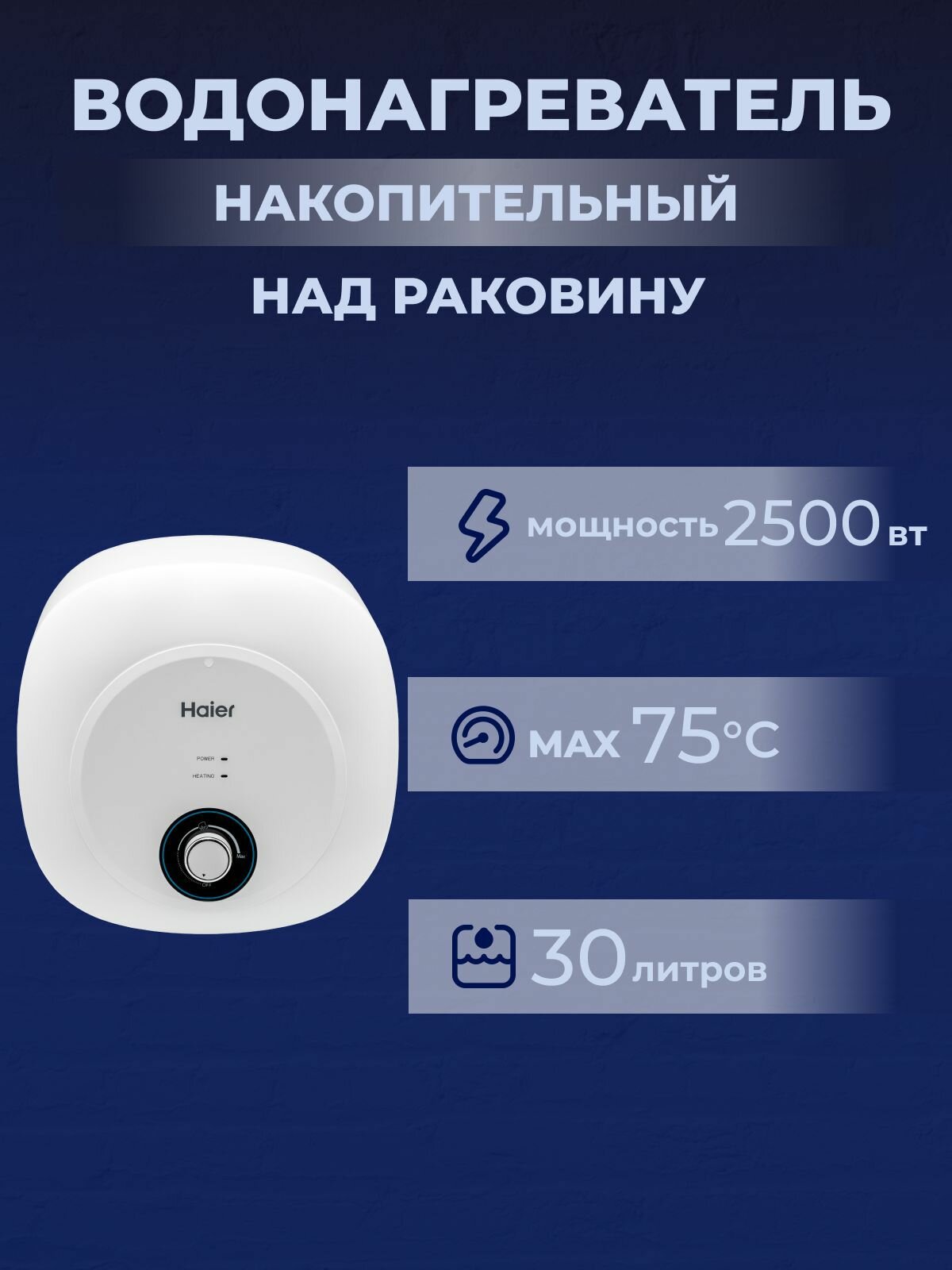 Haier ES30V-MQ1. Электрический Накопительный водонагреватель 30л. Над раковину. интересное: