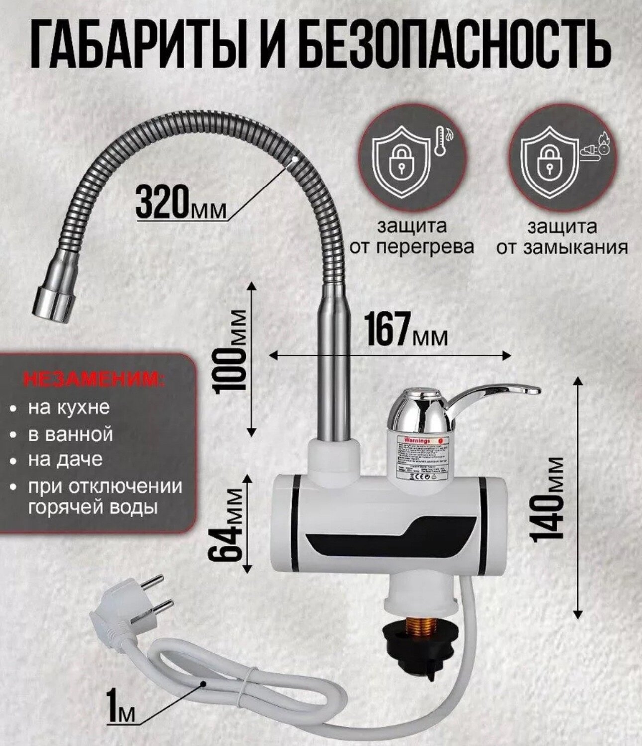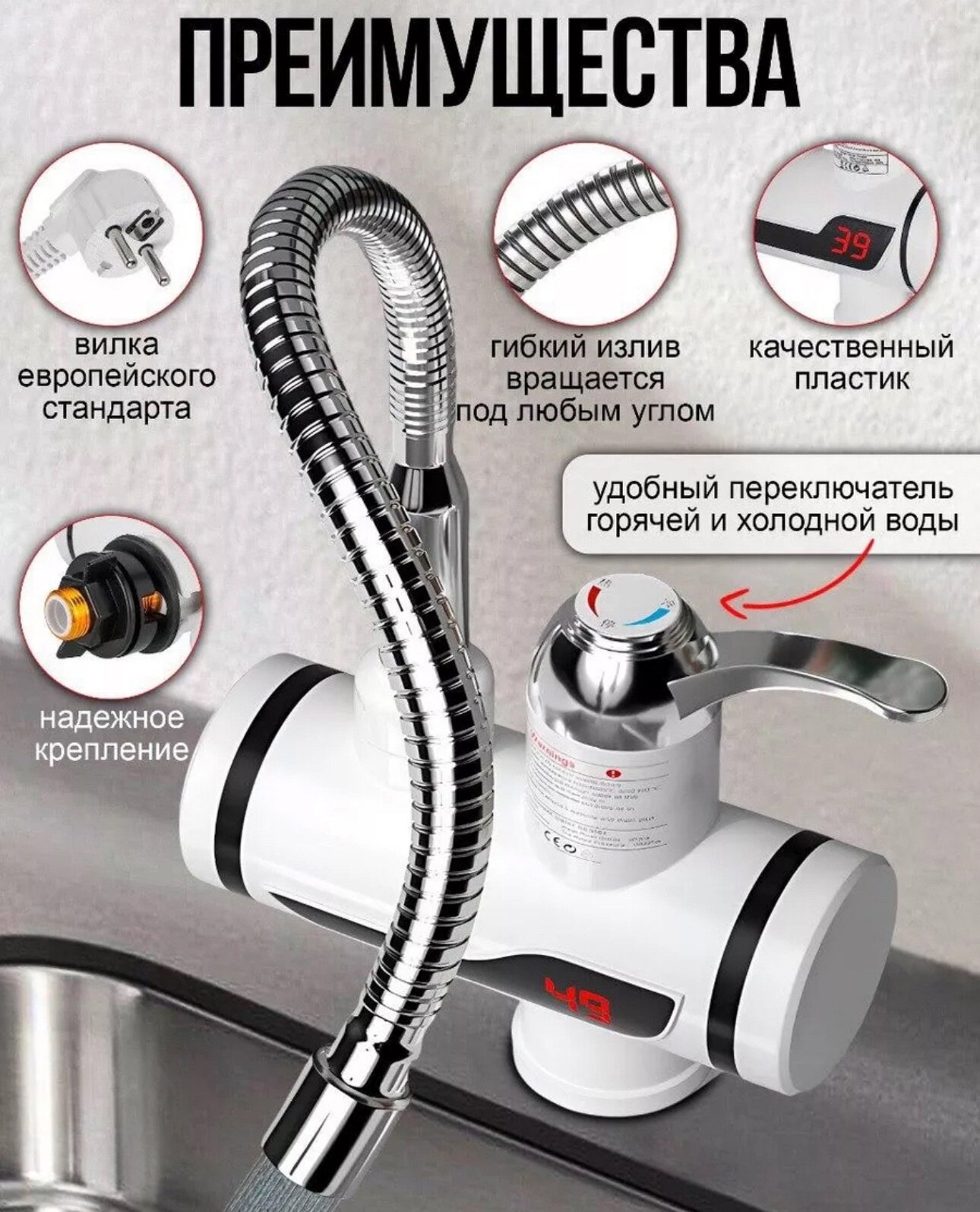 | Дополнительная информация | Кран водонагреватель с LED дисплеем - 1шт, шнур с вилкой в 220 В - 1шт; бойлер |