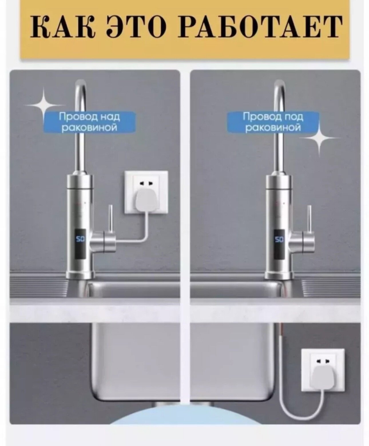 | Дополнительная информация | Кран водонагреватель с LED дисплеем - 1шт, шнур с вилкой в 220 В - 1шт; бойлер |