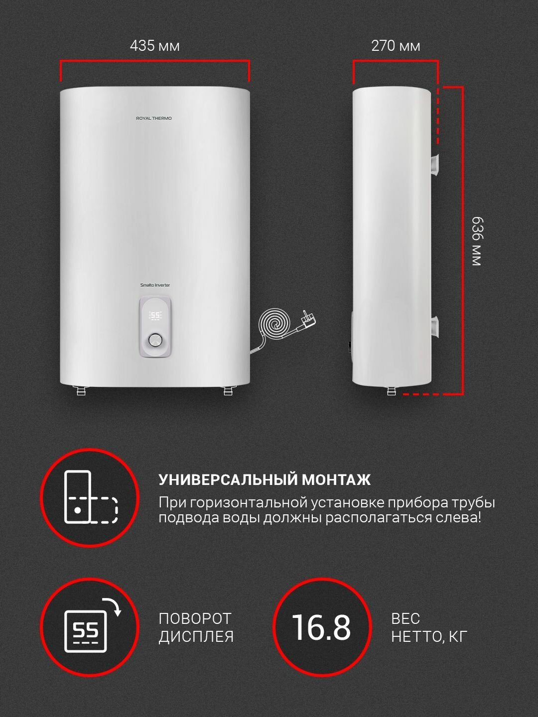 Водонагреватель накопительный Royal Thermo RWH 30 литров Smalto Inverter интересное: