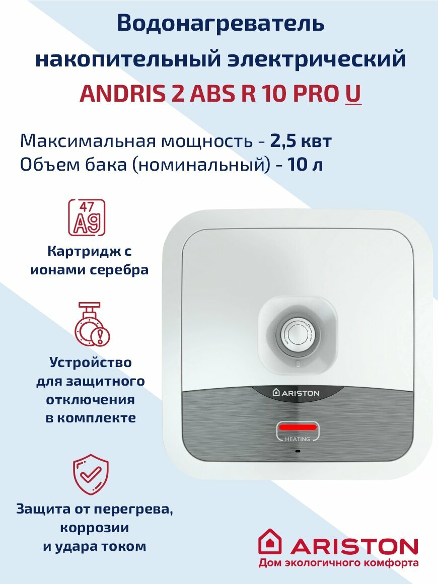 Водонагреватель электрический накопительный Ariston ABS ANDRIS2 PRO 10 U (под раковиной) 10 литров, 2,5 кВт 3180786 интересное: