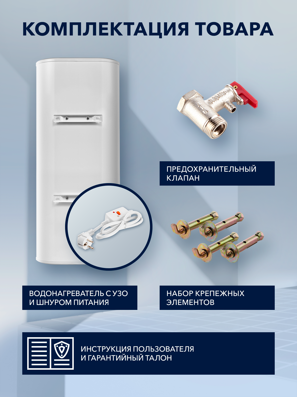 | Комплектация | Водонагреватель; Набор крепежных элементов; Гарантийный талон |