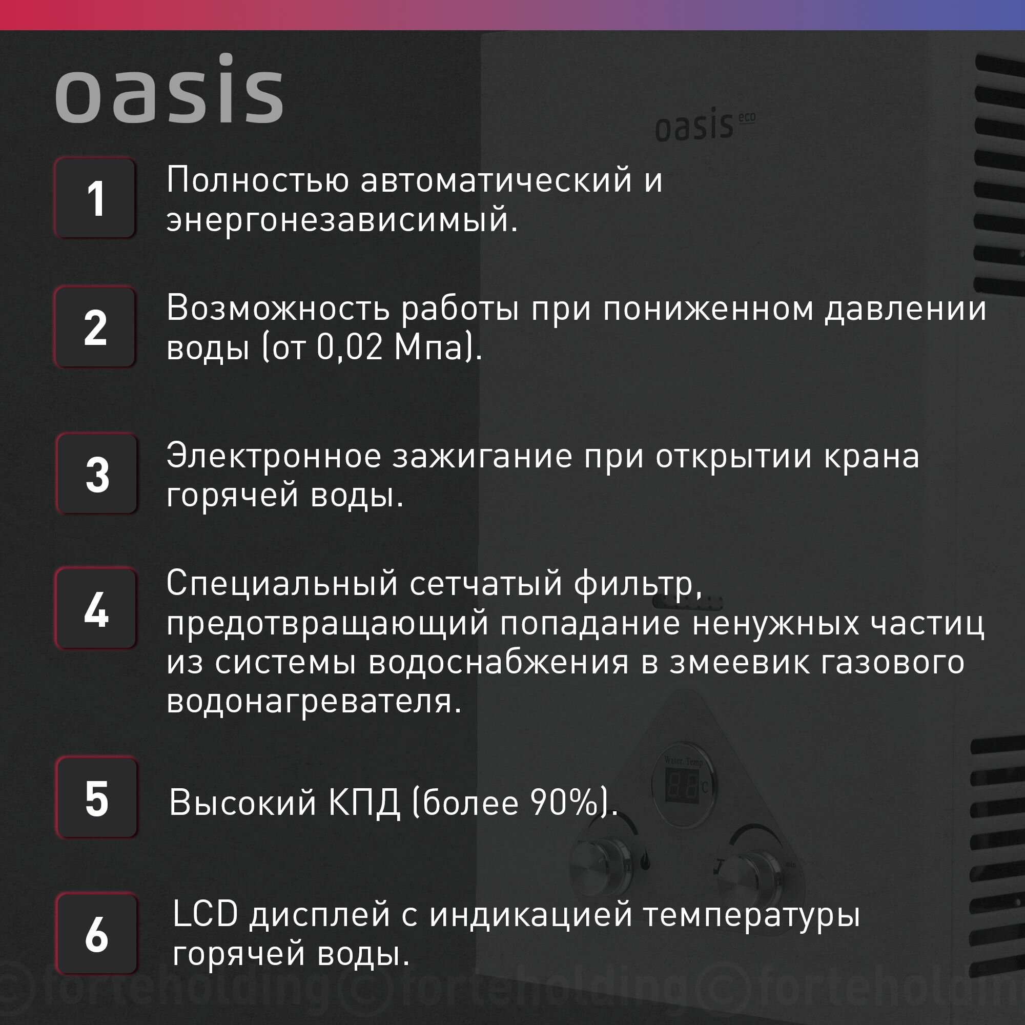 Газовая колонка / водонагреватель газовый проточный с дисплеем Oasis Eco W-20(D) интересное: