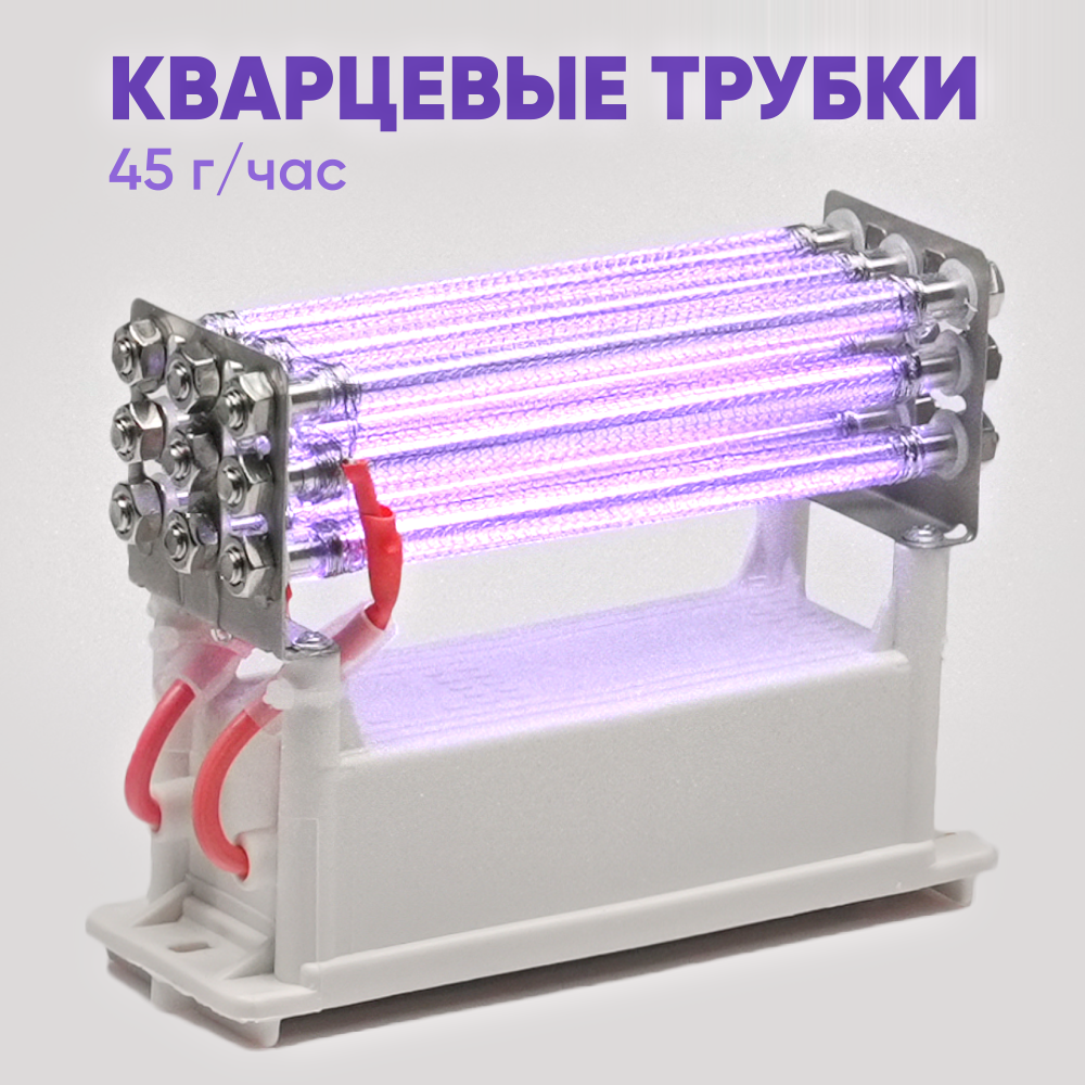 | Подробная комплектация | Модуль кварцевых трубок для озонатора 45 гр. в час., Инструкция пользователя, Гарантийный талон |