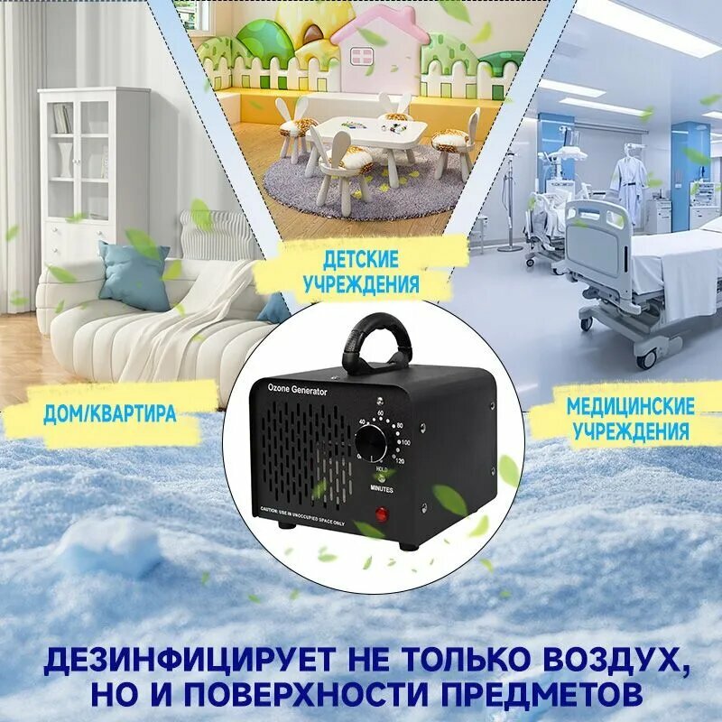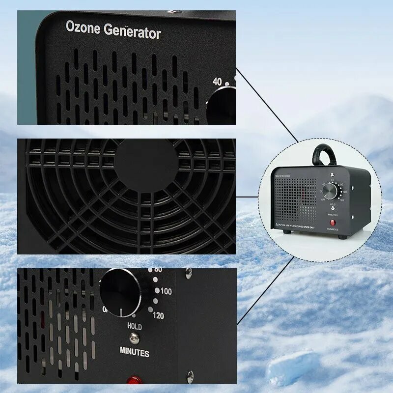 Озонатор 500 мг/час, 220AC/12DC с таймером. Очиститель и очиститель воздуха, воды, продуктов и холодильника, охват до 50 м2. Озонатор для дома.