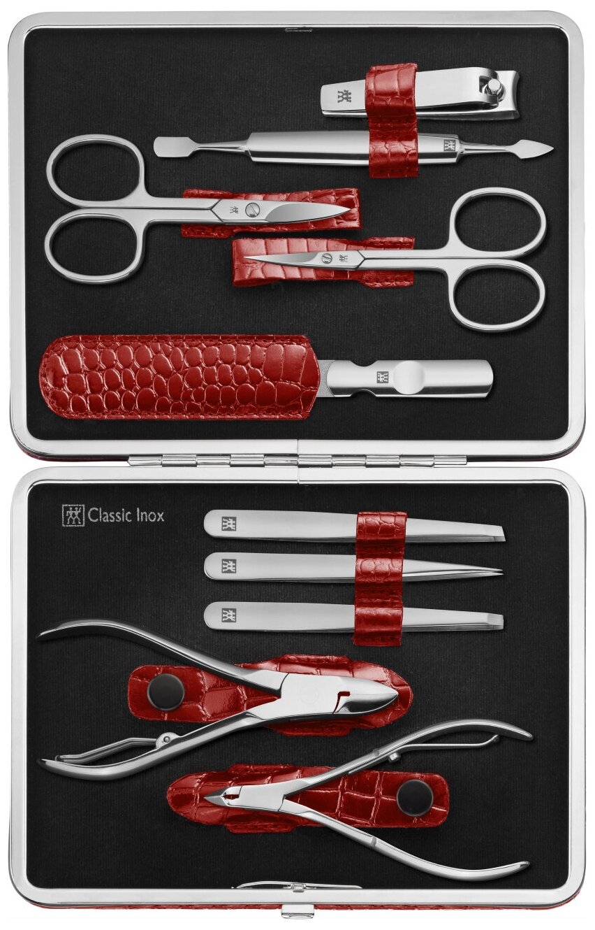 Маникюрный набор Zwilling Classic Inox 10 предметов, красный, отделка крокодил