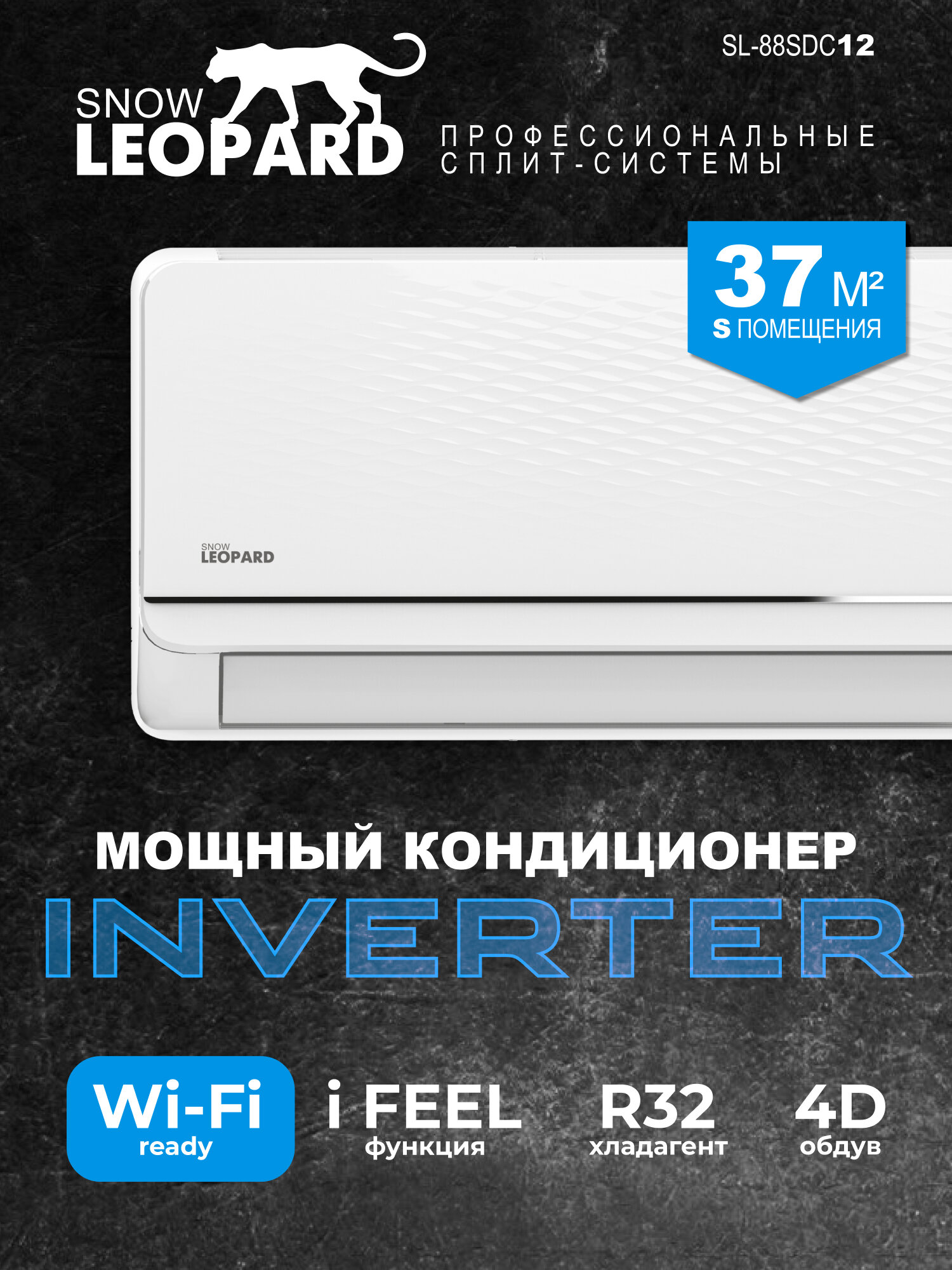 Сплит-система Snow Leopard SL-88SDC12: 37м2/ Инвертор/ Сверхтихий/ 4D обдув/ I-FEEL/ Двухроторный компрессор GMCC интересное: