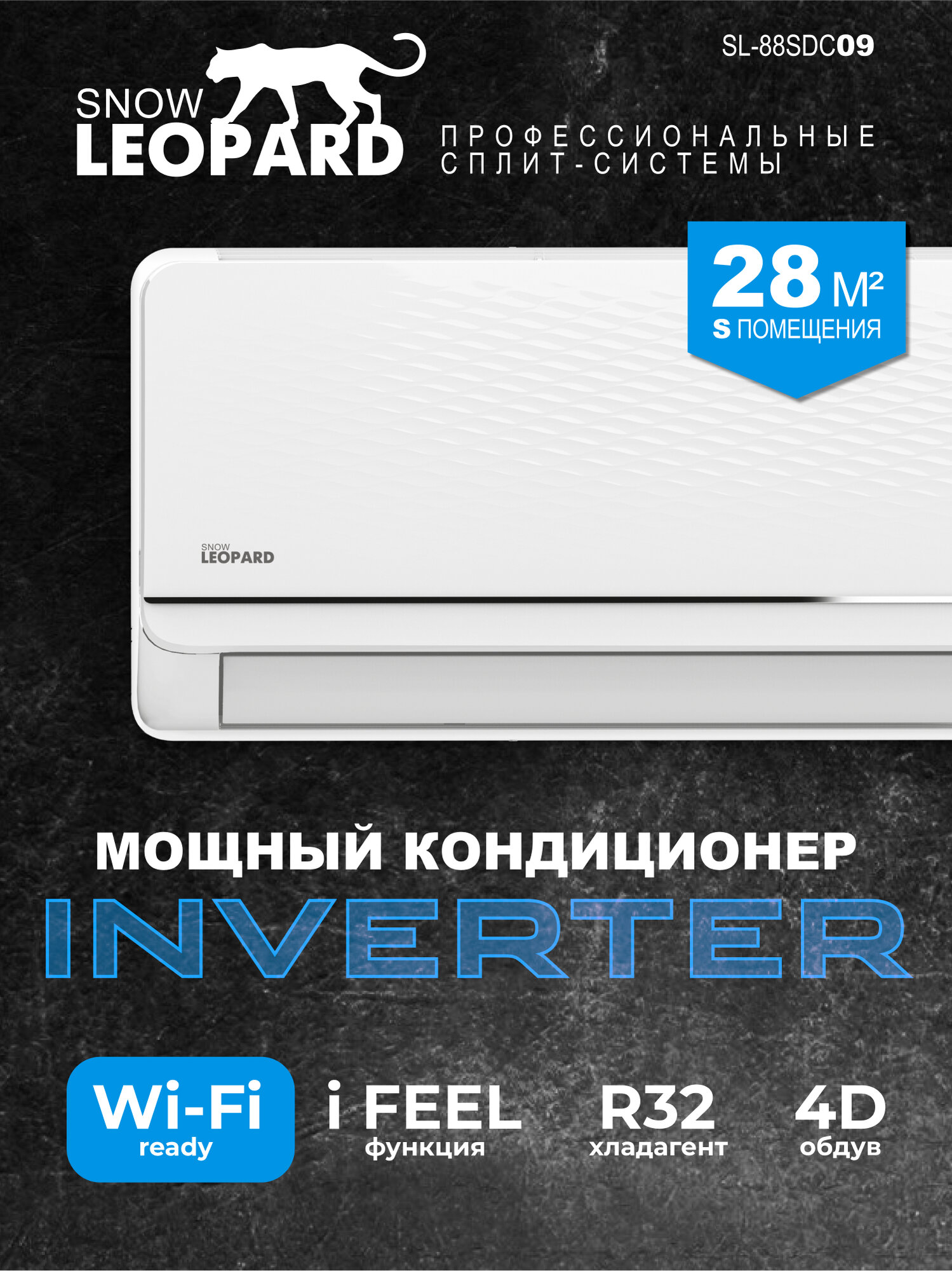 Купить Сплит-система Snow Leopard SL-88SDC09: 28м2/ Инвертор/ Сверхтихий/ 4D обдув/ I-FEEL/ Двухроторный компрессор GMCC